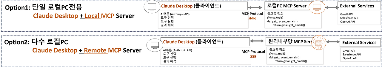 장점: USB를 꽂으면 바로 인식되듯, 로컬 환경에서 도구(Gmail, Salesforce 등)를 매우 쉽고 강력하게 제어합니다.