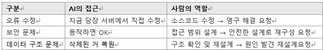 AI는 '지금 당장 오류를 없애는 것'에 집중합니다. 그 수정이 내일도, 다음 달에도 유효한지는 — 사람이 챙겨야 할 몫이었습니다.