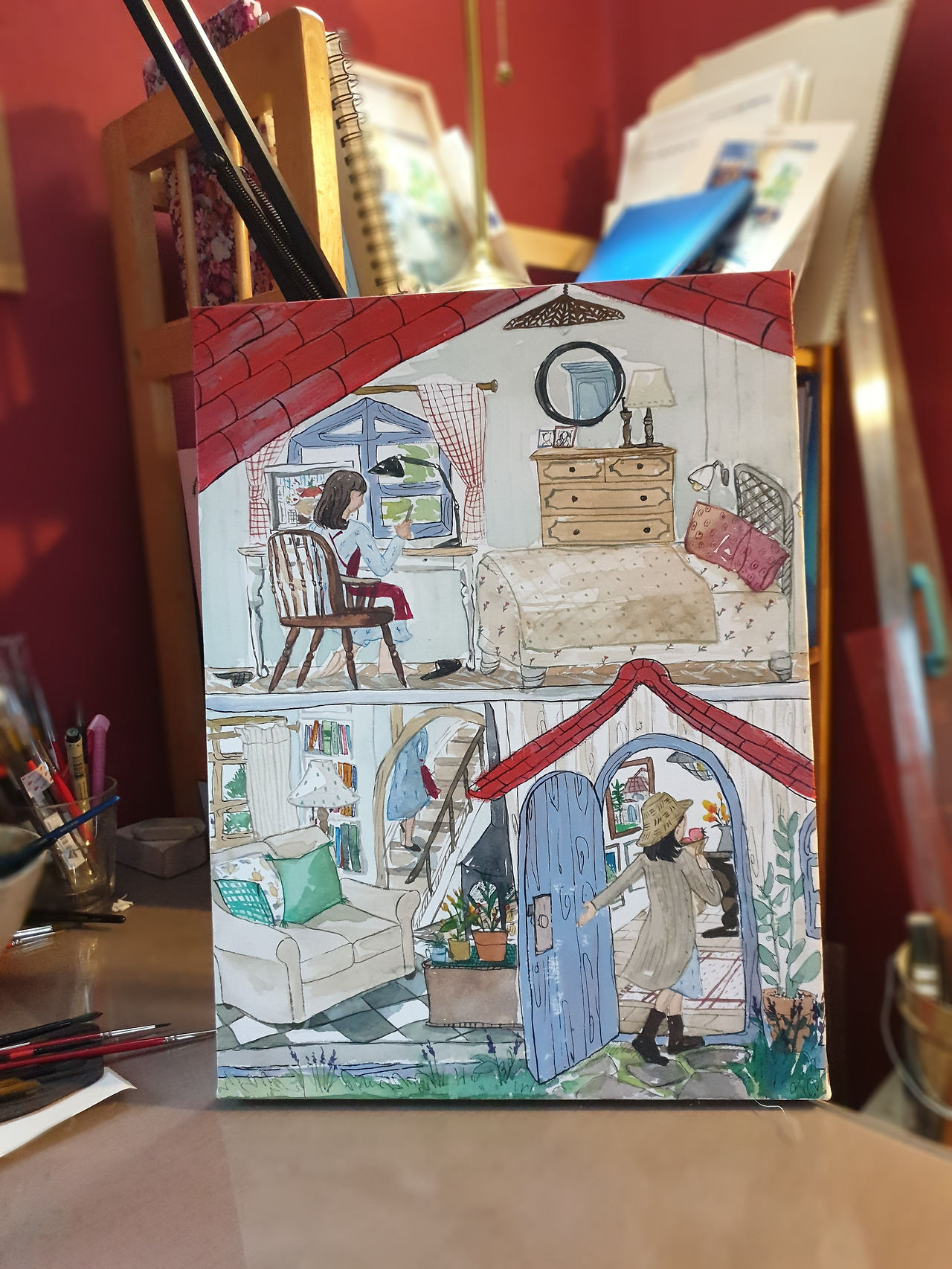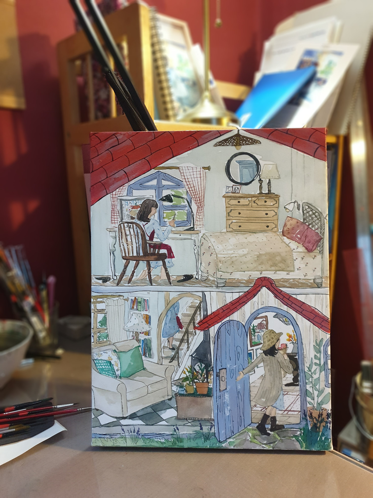 요즘은 아름다운 집과 공간에 대한 이미지들을 매일 접하면서 내가 꿈꾸는 공간과 순간들을 그리고 있어요. 상상만으로도 즐거운 순간과 공간들. 회화 작업 완성 전, 코팅 작업하기 전에 브런치에 올려봅니다. 그림을 스치듯 보면서 따뜻한 웃음이 지어지기를.