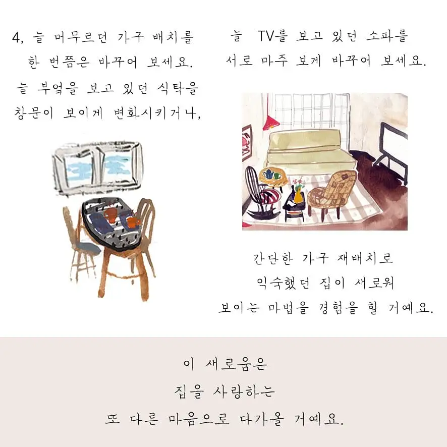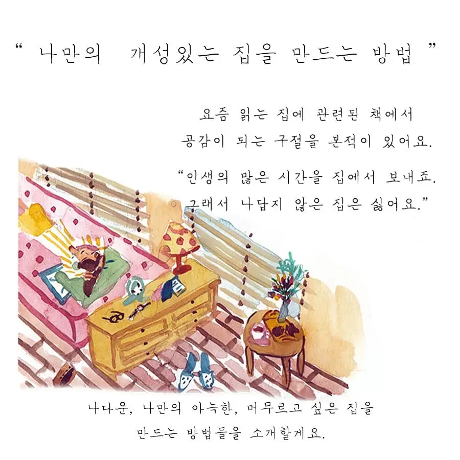 집을 꾸미고, 그림을 그립니다. 소소한 일상에서 나오는 감정들을 기록해두었다가 그림과 글로 만드는 중입니다.