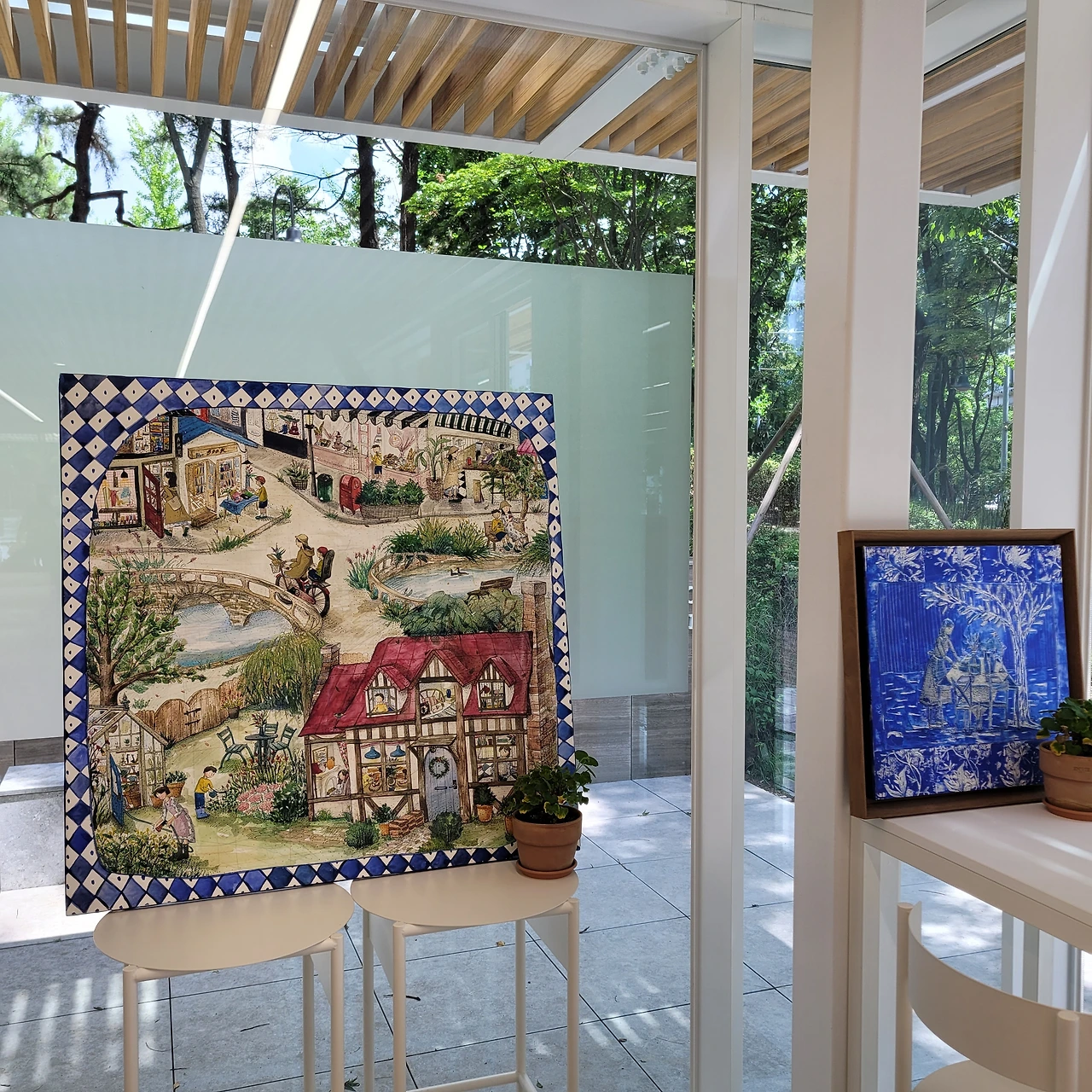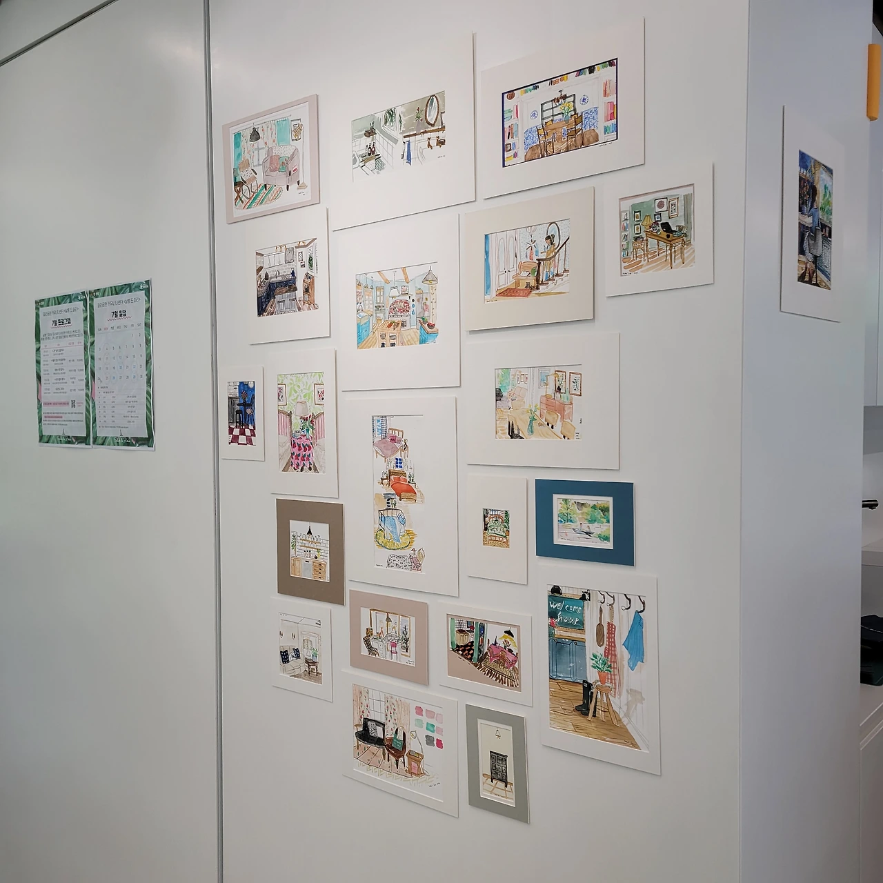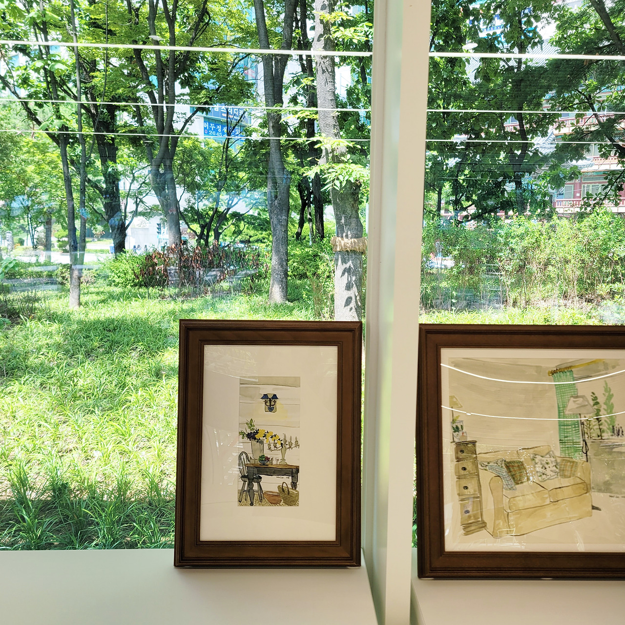 전시장이 이 정도 거리면.. '육아로 잠시 멈춘 나의 그림들을 전시하며, 마음이 급해지거나 불안하지 않겠구나'라고 생각했었다. 바꿔 말하면, 부담 없이 전시를 할 수 있겠다고 생각했다. 이곳은 나의 동네, 나의 삶이 펼쳐지는 곳이니까.