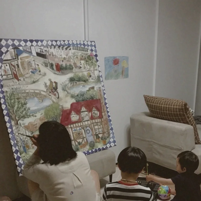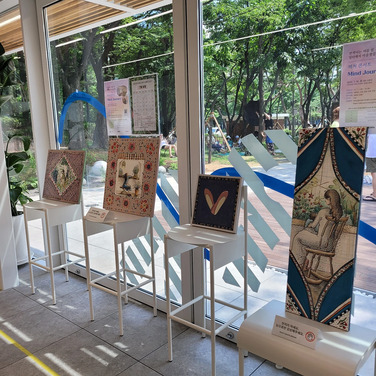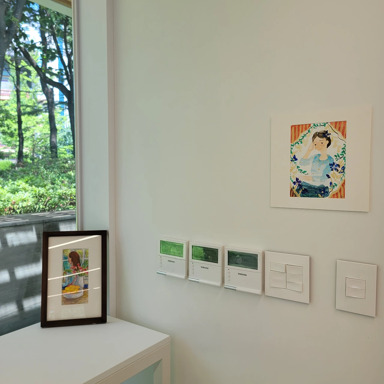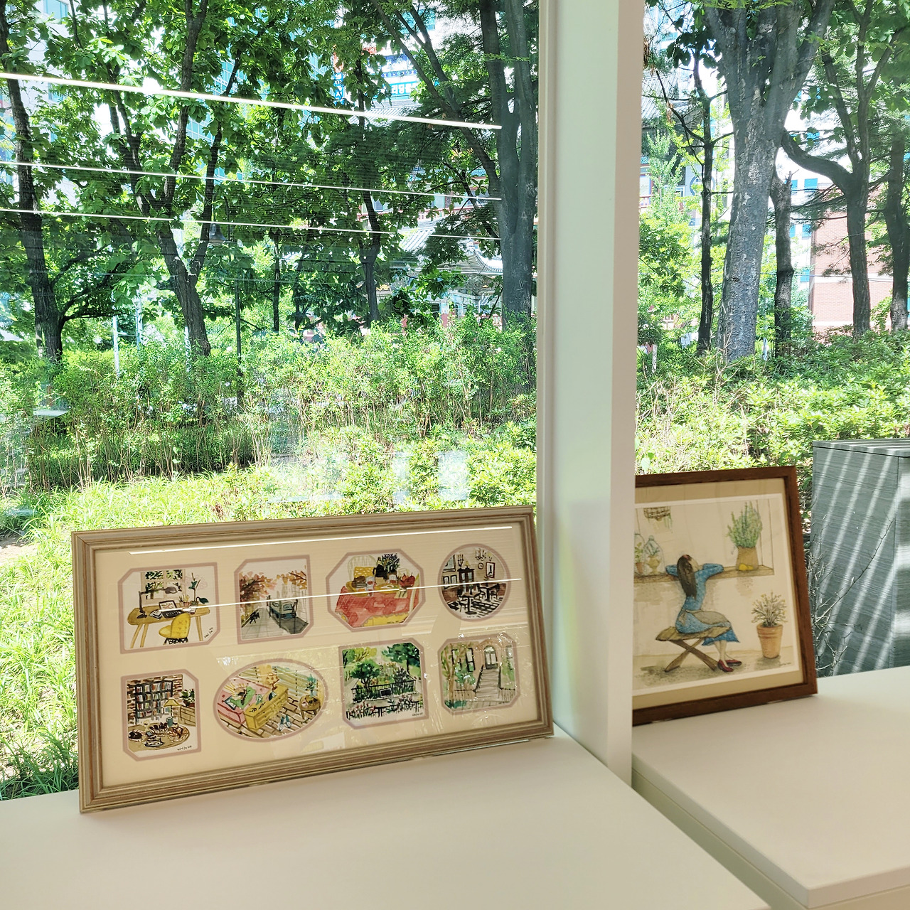 전시장이 이 정도 거리면.. '육아로 잠시 멈춘 나의 그림들을 전시하며, 마음이 급해지거나 불안하지 않겠구나'라고 생각했었다. 바꿔 말하면, 부담 없이 전시를 할 수 있겠다고 생각했다. 이곳은 나의 동네, 나의 삶이 펼쳐지는 곳이니까.