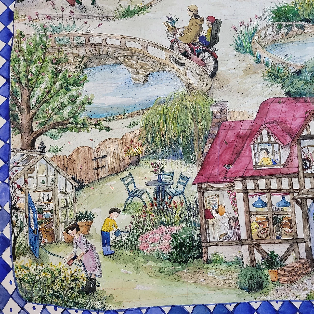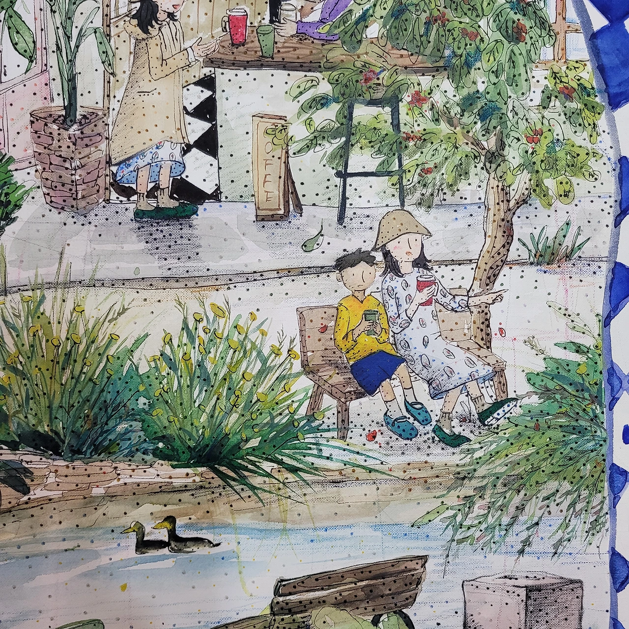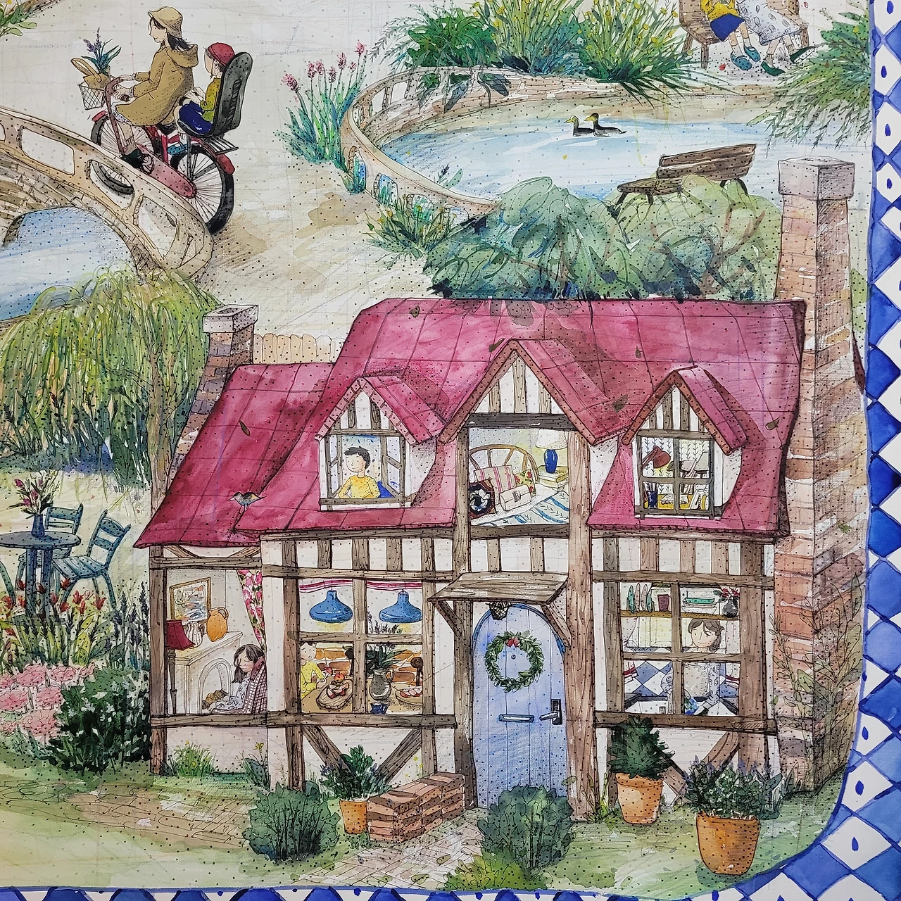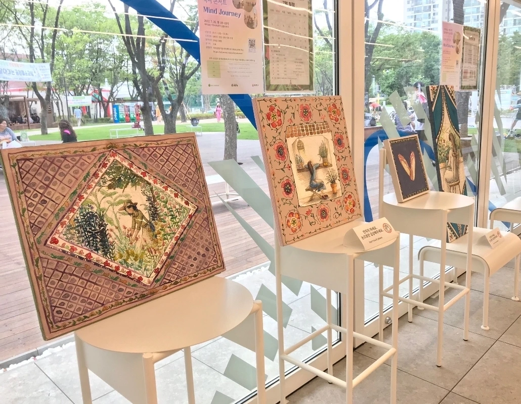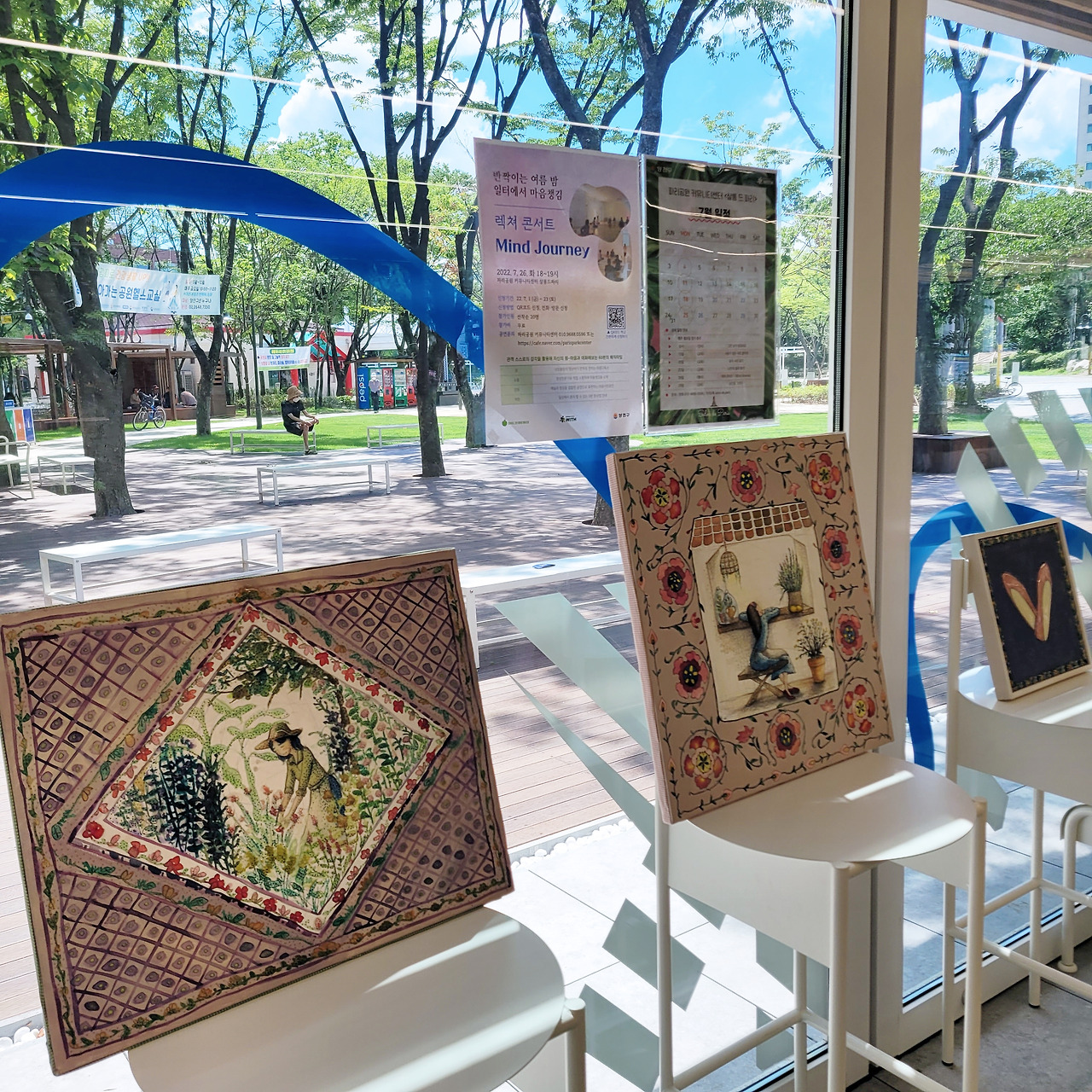 부담 없는 전시를 하고자 했지만, 전시 막바지에는 집에도 못 들어가고 작업실에서 욕심을 내어 마무리할 작업을 했다. 그렇게 완성한 작품이 '아무 일도 일어나지 않은 너와 나의 평온한 하루, 종이에 혼합재료, 135 ×135cm, 2022' 이번 전시에서 가장 큰 사이즈의 작품이다. 곳곳에 내가 생각하는 일상의 평온함과 행복을 담았다.