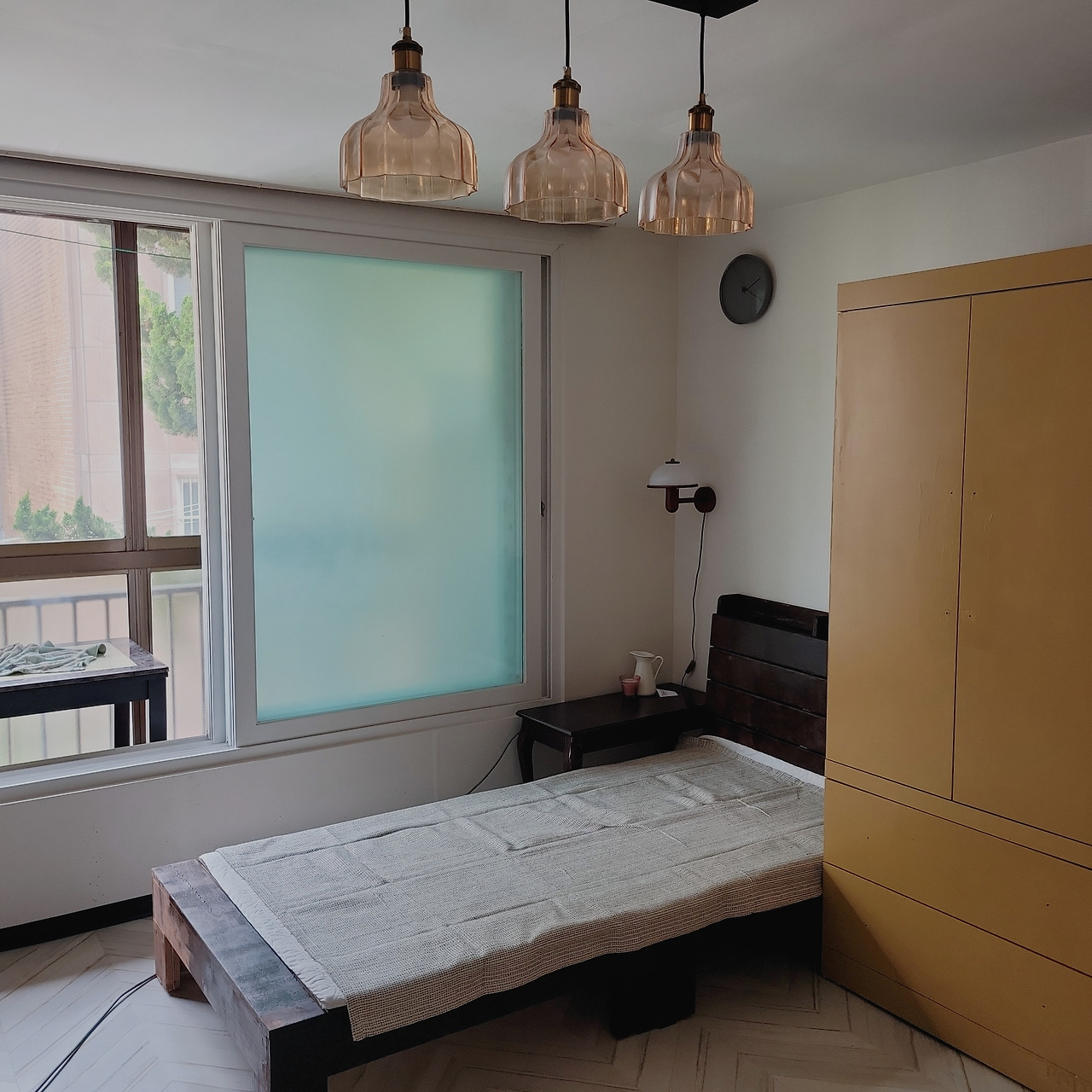 이 빌라를 마음먹고 고치게 됩니다. 장소를 보면, 불현듯 이곳을 어떻게 고치면 되겠다...라고 생각이 들 때가 있잖아요. 이 집이 그랬어요. 낡았지만, 붉은 나무문과 창밖으로 보이는 소나무.. 모두 인테리어에 이용해서 방향을 잘 잡아가면 되겠다고 생각했습니다.
