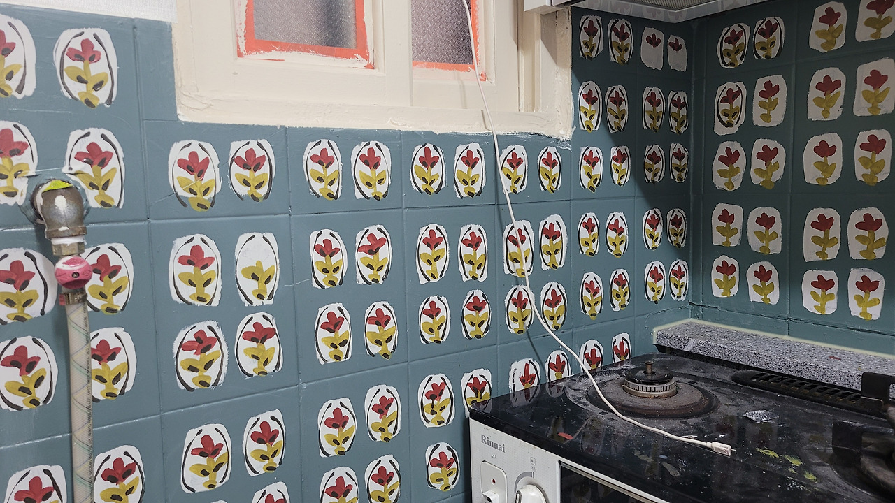 셀프 페인팅하다 열정이 과해져서 타일에 그림을 그리는 대환 장파 티를.. 함.