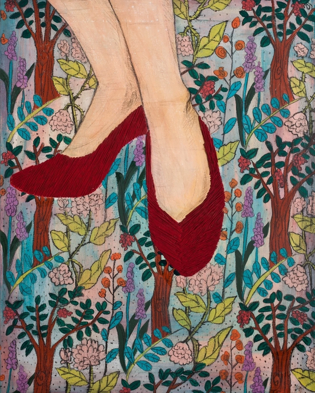 회화 작업에서는 나는 인물과 사물에 모두 점을 찍는다. 이 기법은 내가 대학원 시절.. 그림을 어떻게 그릴까 진지하게 고민하다가 생각해낸 기법이다. 점들은 인물의 밝음과 어둠을 더 대비시키고, 인생의 지나가는 순간들을 의미하기도 한다. 또한 그림에서 점은 이미 익숙해진 그림 기법 속에 이질적인 점으로 재미를 주기도 한다. (주관적 관점) 왠지 모르게 나는 거의 다 그린 그림에 어울리는 점들을 찍으면서 해방감을 느끼기도 하는데.. 이것은 내가 이제껏 배운 그림 기법에 대한 해방감이기도 하다.