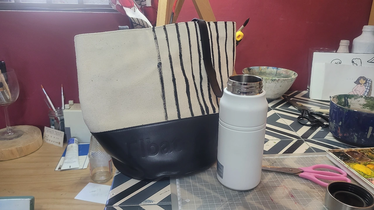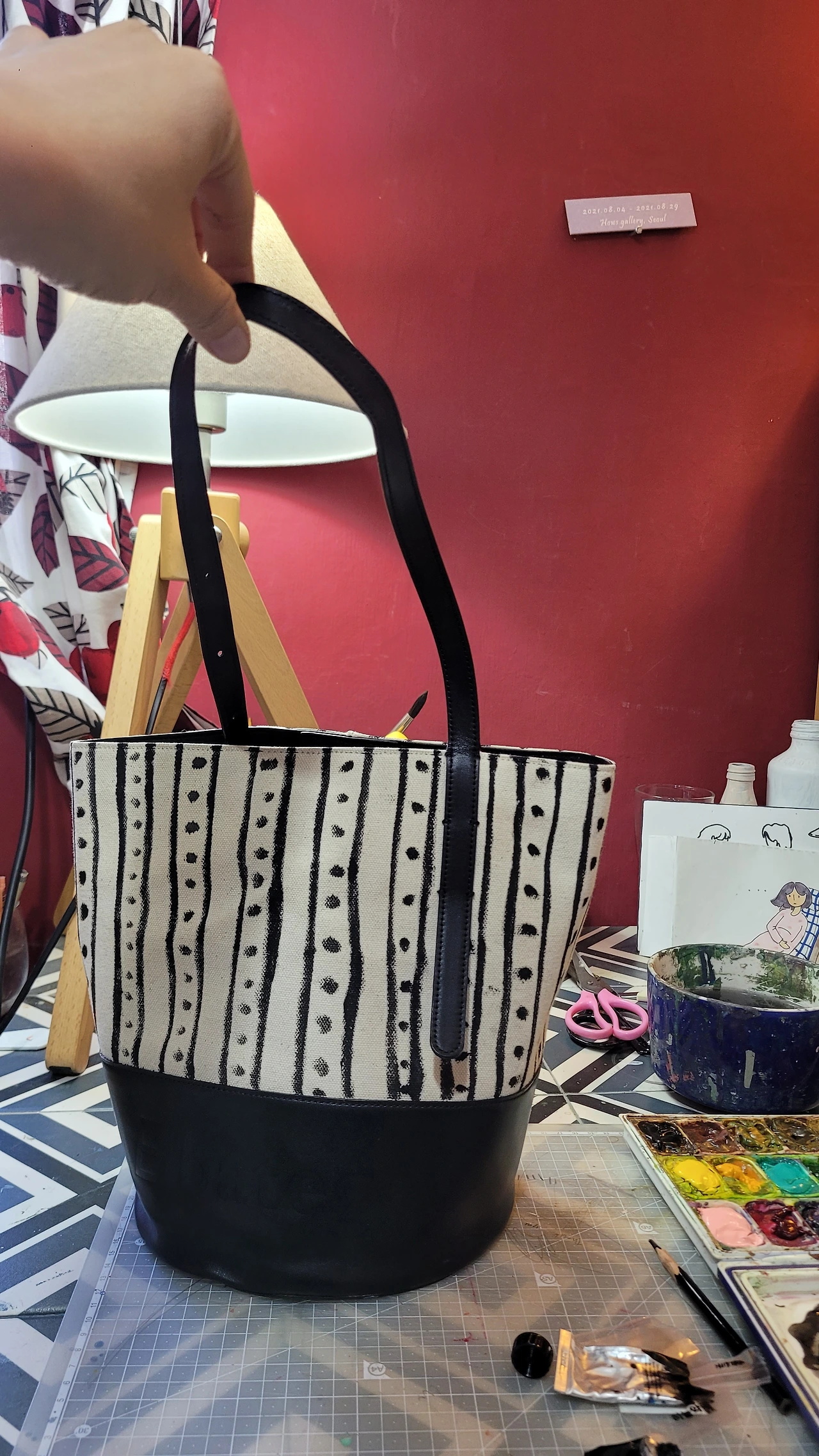 직접 질려서 안 쓰게 된 리넨 가방에 그린 패턴을 더해서 만들어 봤어요.