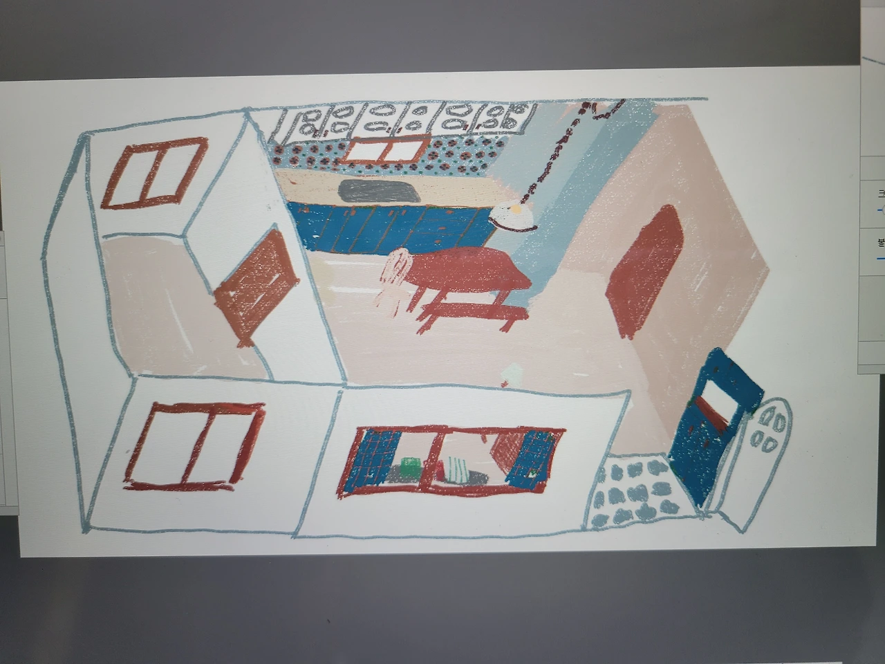 집 주안분이 이 집에 대한 이야기를 해주면서, 이 집은 복층으로 되어있는 집이었는데 1층과 2층으로 나누며, 10년 전에 공사를 했다고 했다. 그때에는 체리색아 유행이라서 물색과 새시 색을 맞추는 센스를 발휘하여 집을 고치고 세입자를 들였다 했다.