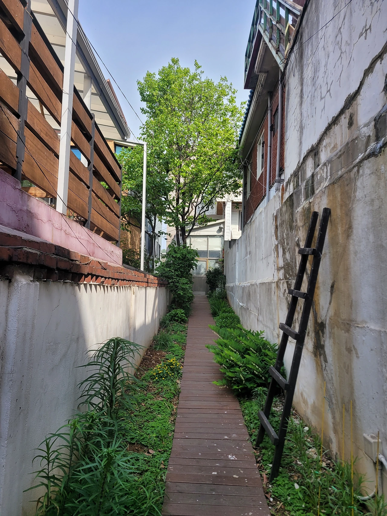 이 집을 처음 보러 간 날.. 나는 이 집의 매력에 푹 빠졌다. 맹지(맹지(盲地, landlocked land)는 주위가 모두 다른 사람 소유의 토지로 둘러싸여 도로에 접하는 부분이 전혀 없는 한 필지의 토지를 뜻한다./위키백과 출저)인 집의 지대의 특성상 집 마당이 열리면 쭉__ 하고 들어가야 하는데, 그 길을 집주인 분이 예쁘게 꾸며두어서 마치 비밀의 집 혹은 정원 속으로 들어가는 느낌이 들었다.