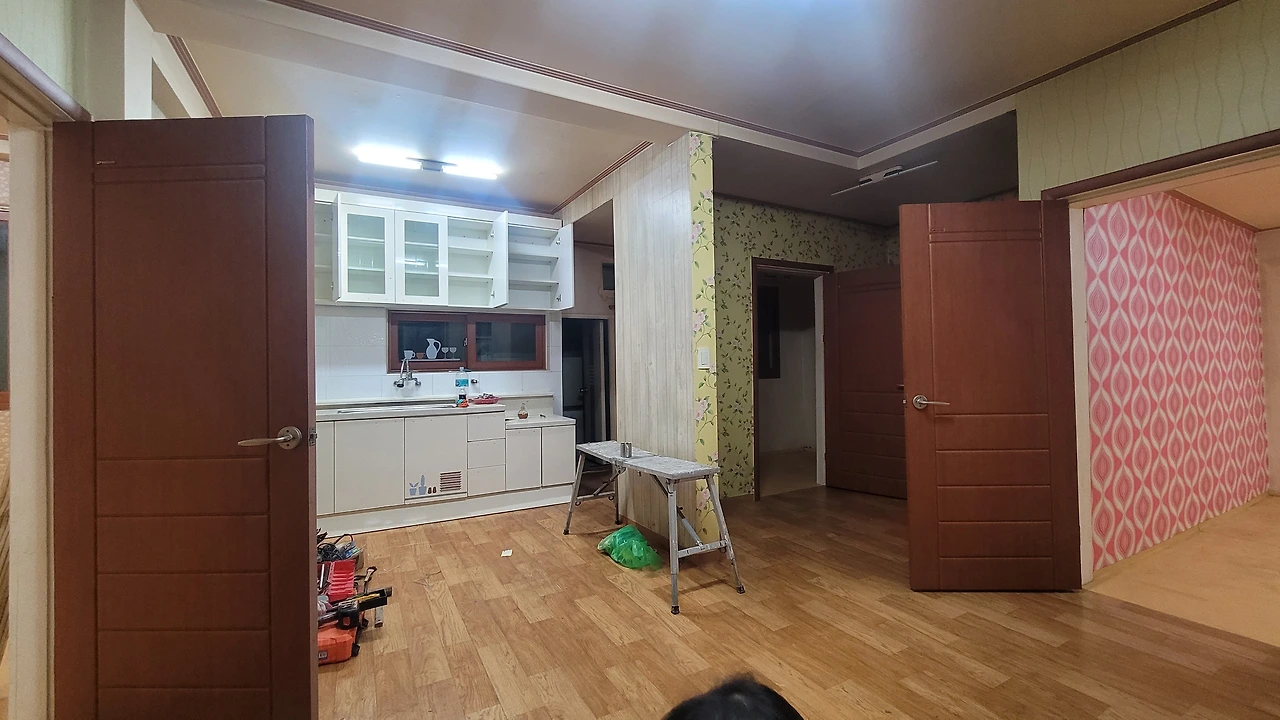 그러면서 체리색의 문은 필름지이고 상태가 좋기에.. 가능한 위에 페인트를 칠하는 것보다 남겨두고 집을 공사해 보고 싶다고 하셨다.