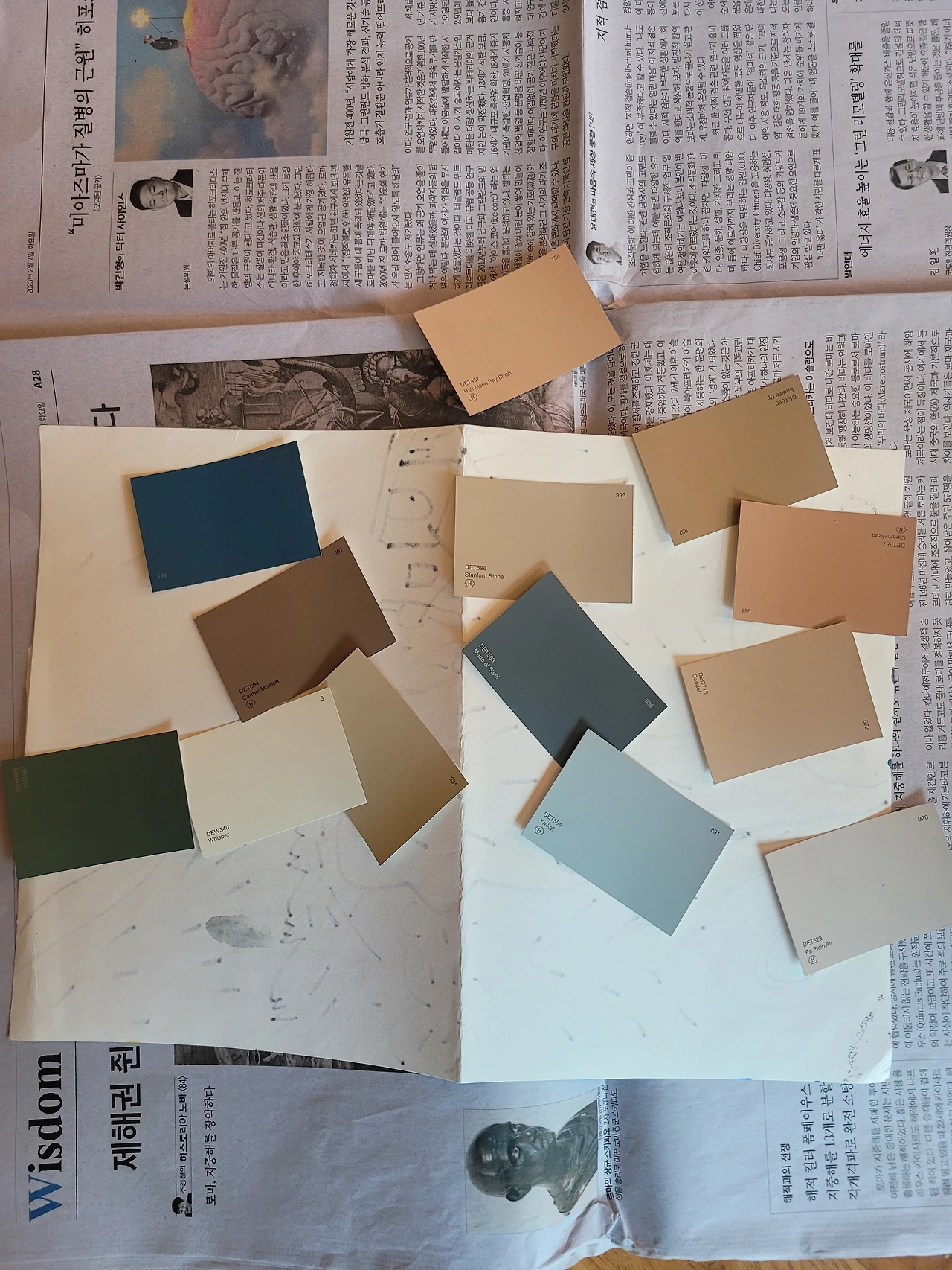 이 집의 색을 고민하느라 많은 페인트 스와치와 고민을 했다.