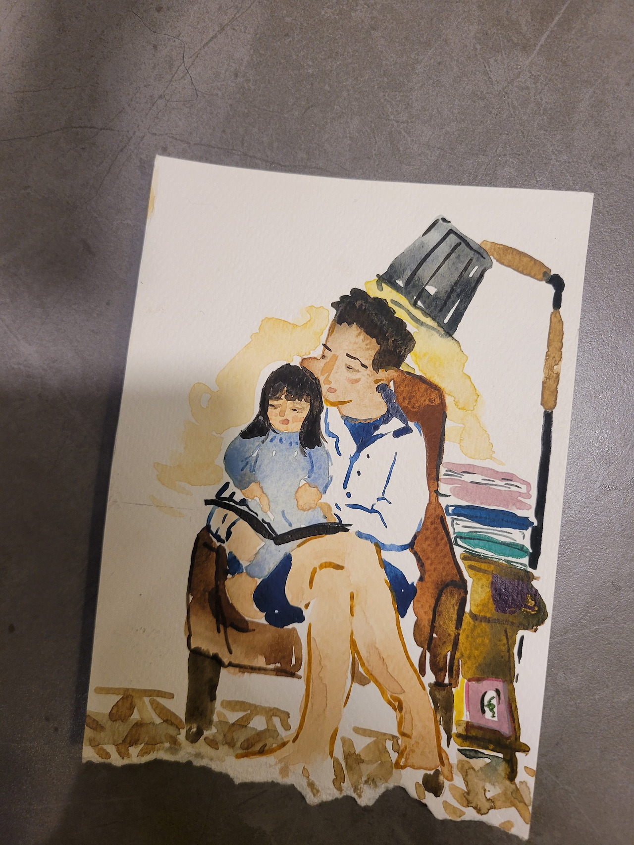 딸을 너무 이뻐하는 그의 모습이 예뻐서 그림에 담아봤다.