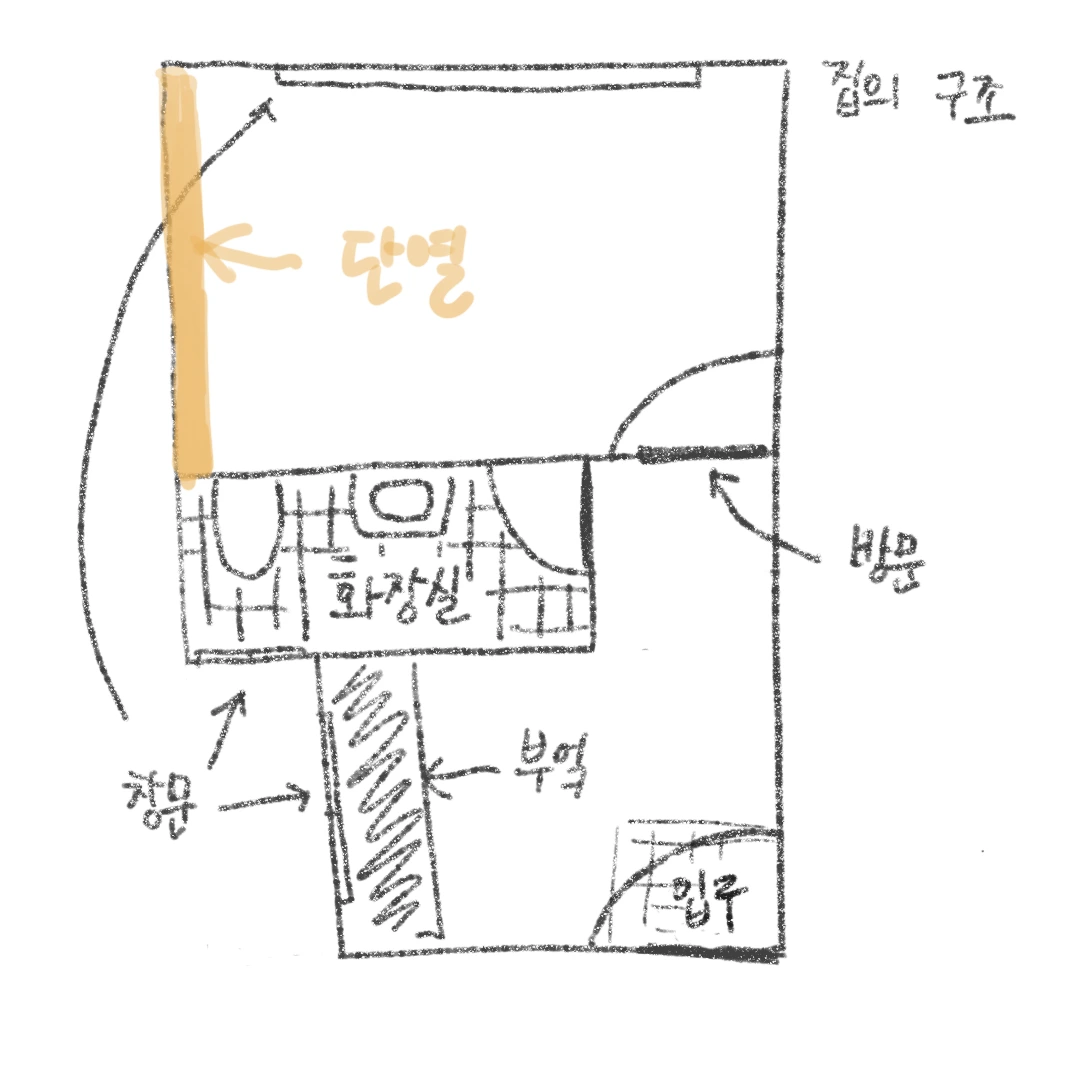 사진 단열 2의 분홍 부분이 스티로폼이 들어가는 부분이다.