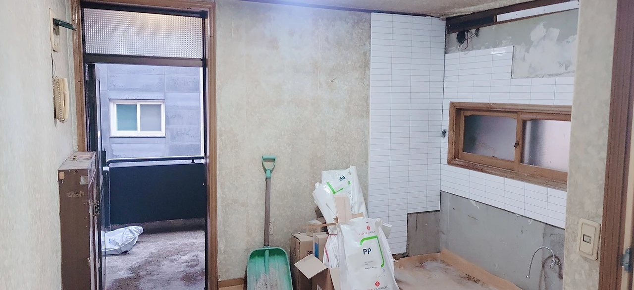 . 철거, 타일 붙이기, 단열 등 기본 작업.