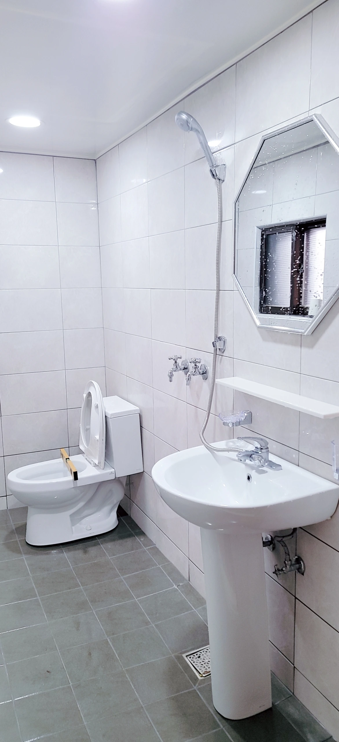 임대를 주기에 편안하고 무난한 그런 화장실을 만들고 싶었는데 그렇게 되었다. (사진상에는 보이지 않지만 욕실 장은 변기 뒤에 달았는데 흰색의 욕실장을 달아 색을 맞추었다.)