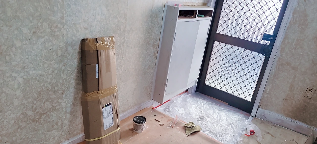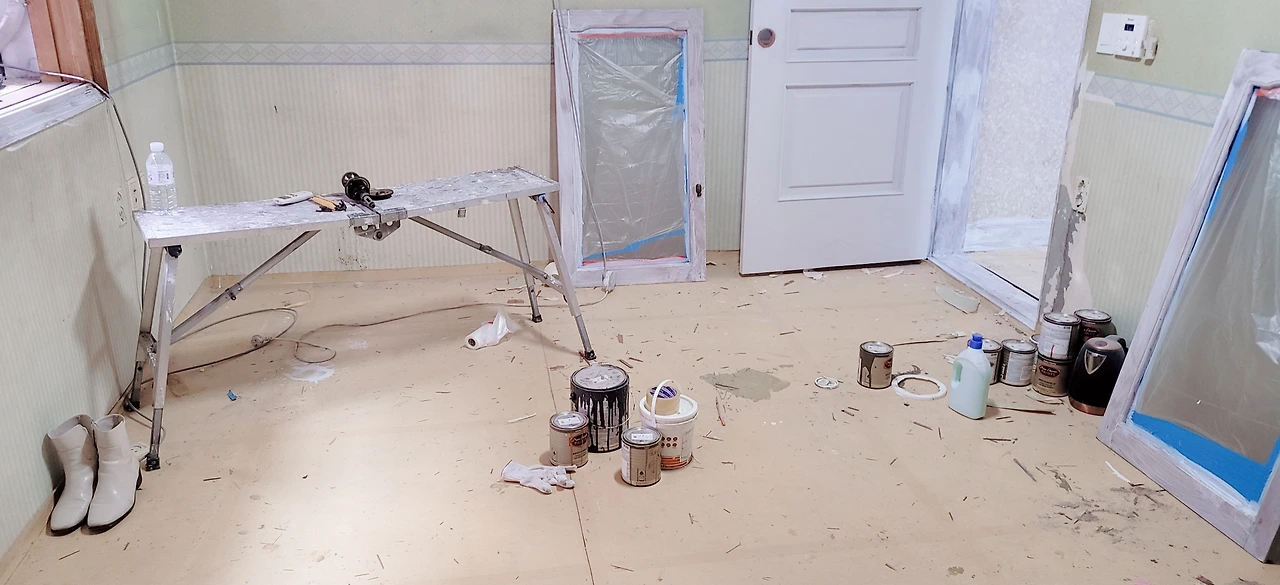이곳에 칠할 곳은 벽에 있는 신발장, 화장실 문틀, 화장실 문, 방문틀, 방문 그리고 방과 거실의 목 창문틀과 창문, 천장의 몰딩까지만 칠하면 되었습니다.