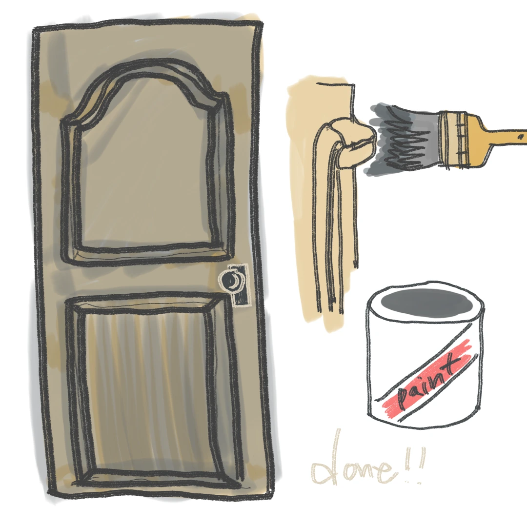 완성된 방문. 문틀아래는 때가 타서 진 브라운 색으로 칠했다.