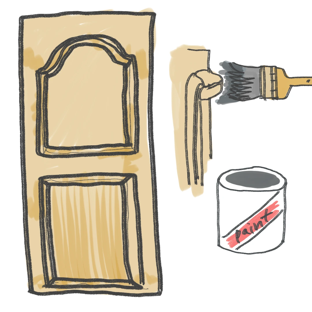 앞면에 굴곡이 있다면, 그곳 먼저 칠하고 문틀의 넓은 평평한 부분을 칠해 줍니다.