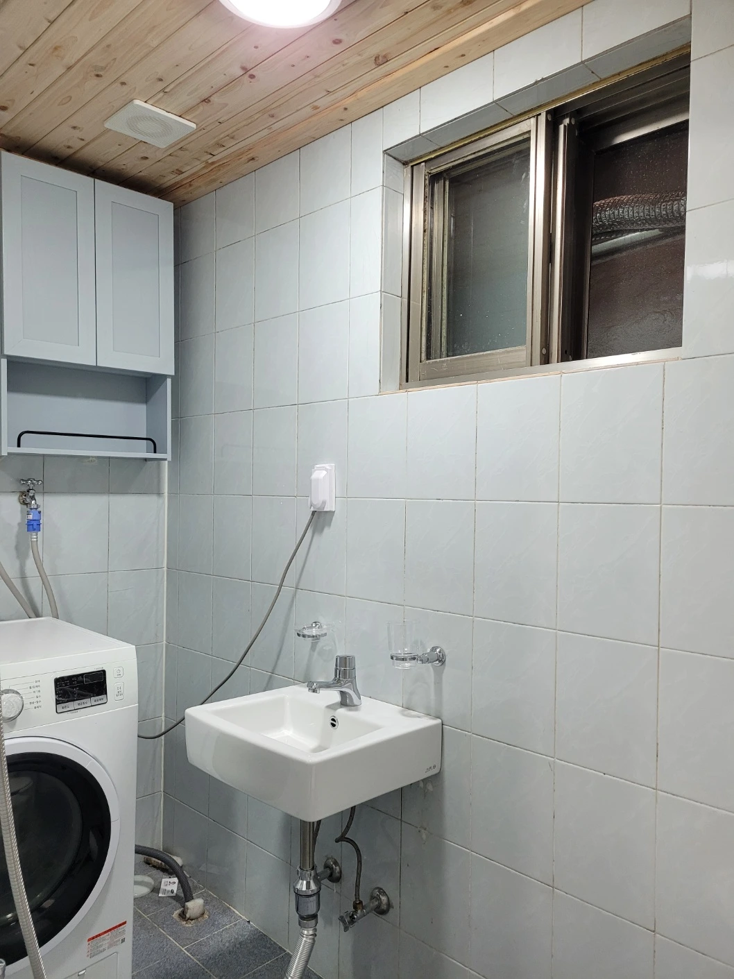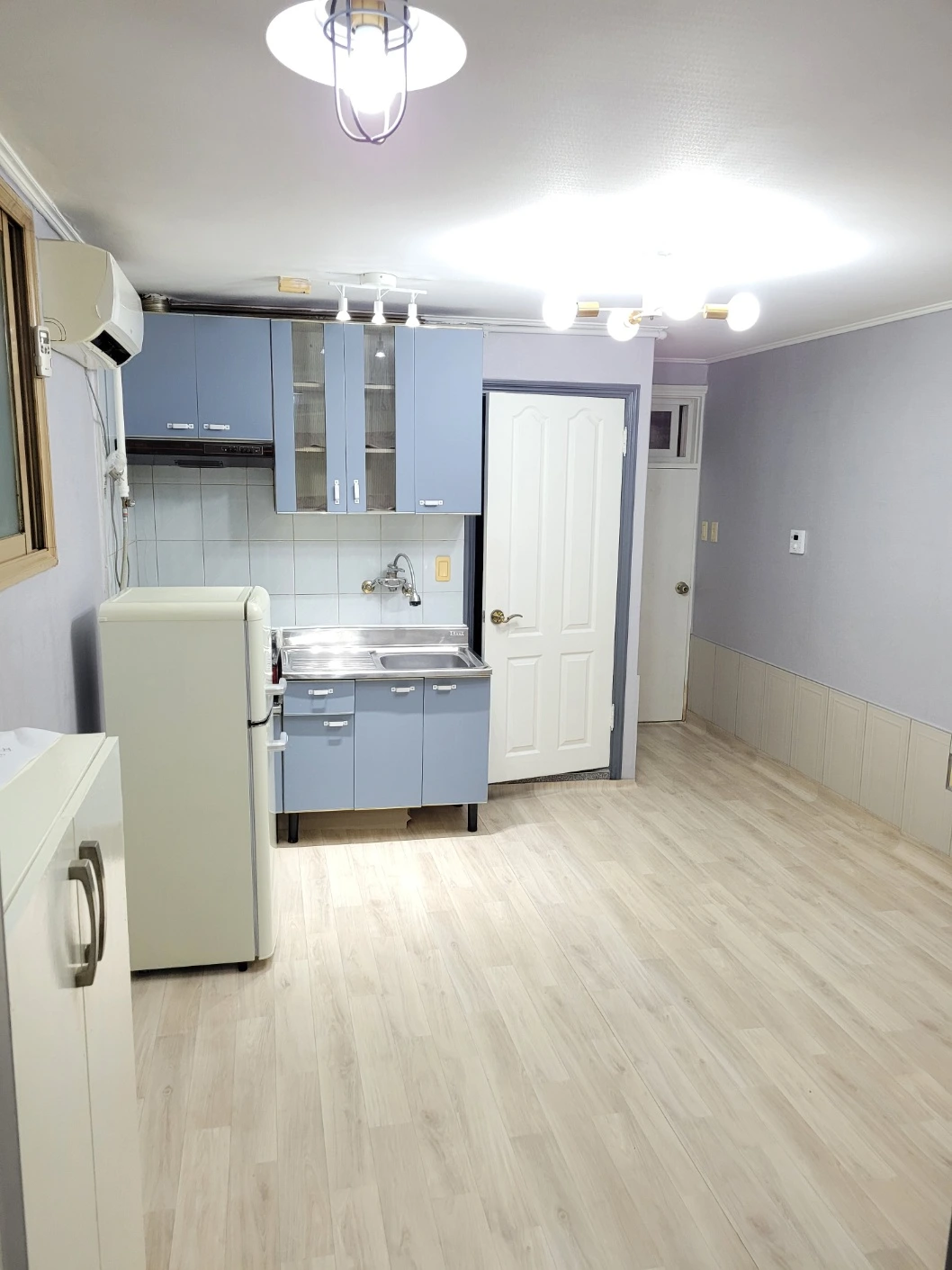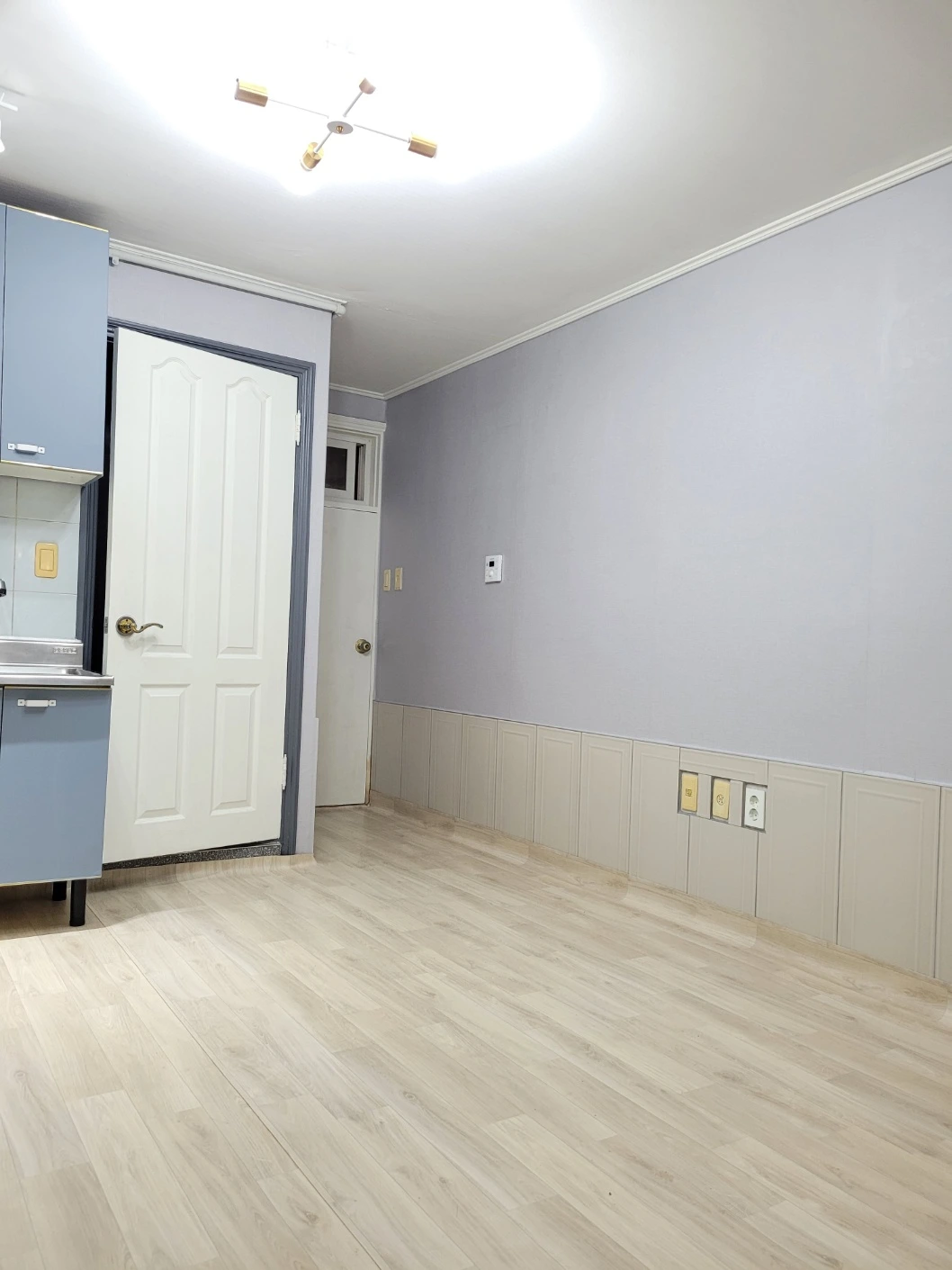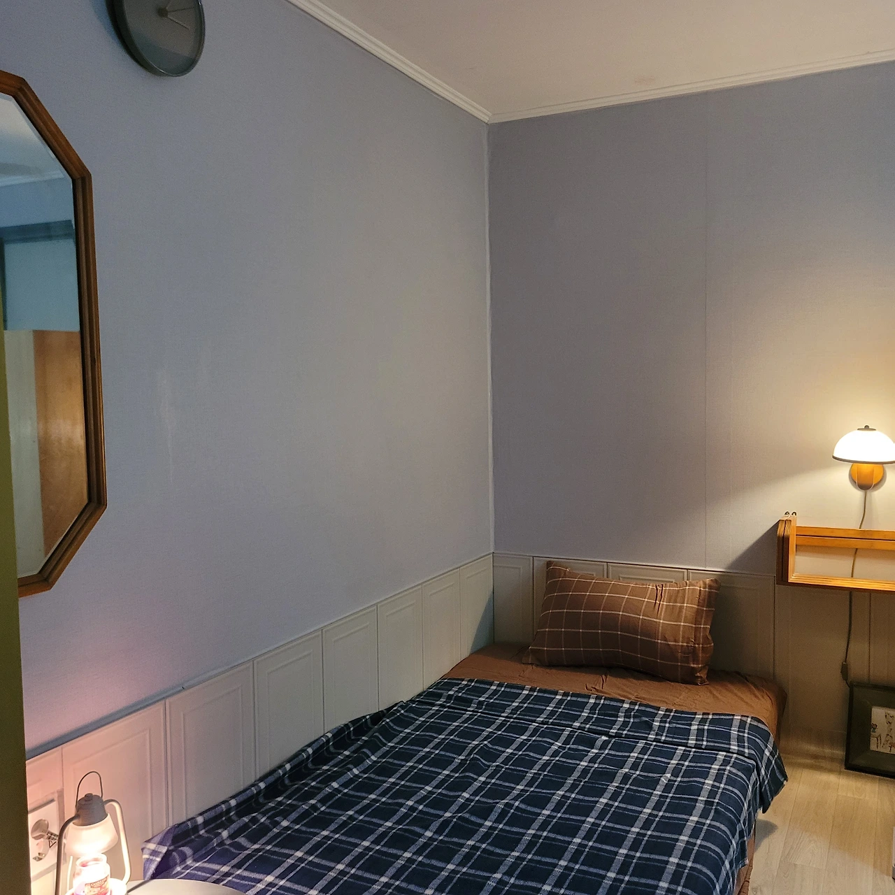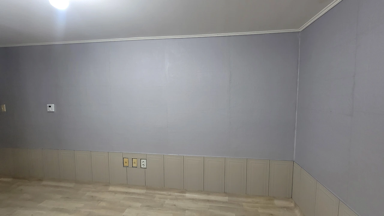 셀프 페인팅+벽면에 타일+ 셀프 벽지+ 새 장판+ 조명교체로 쾌적한 공간이 되었습니다.