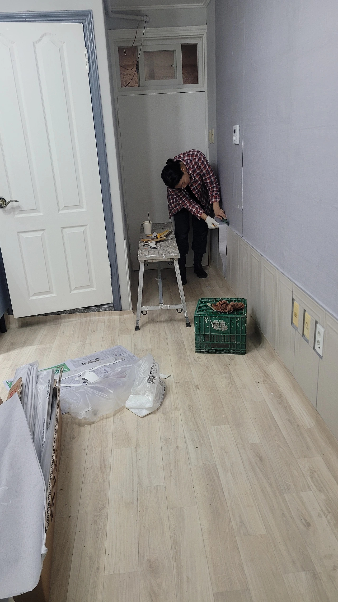 그리고는 제가 먼저 와서 셀프로 벽지를 발랐습니다.