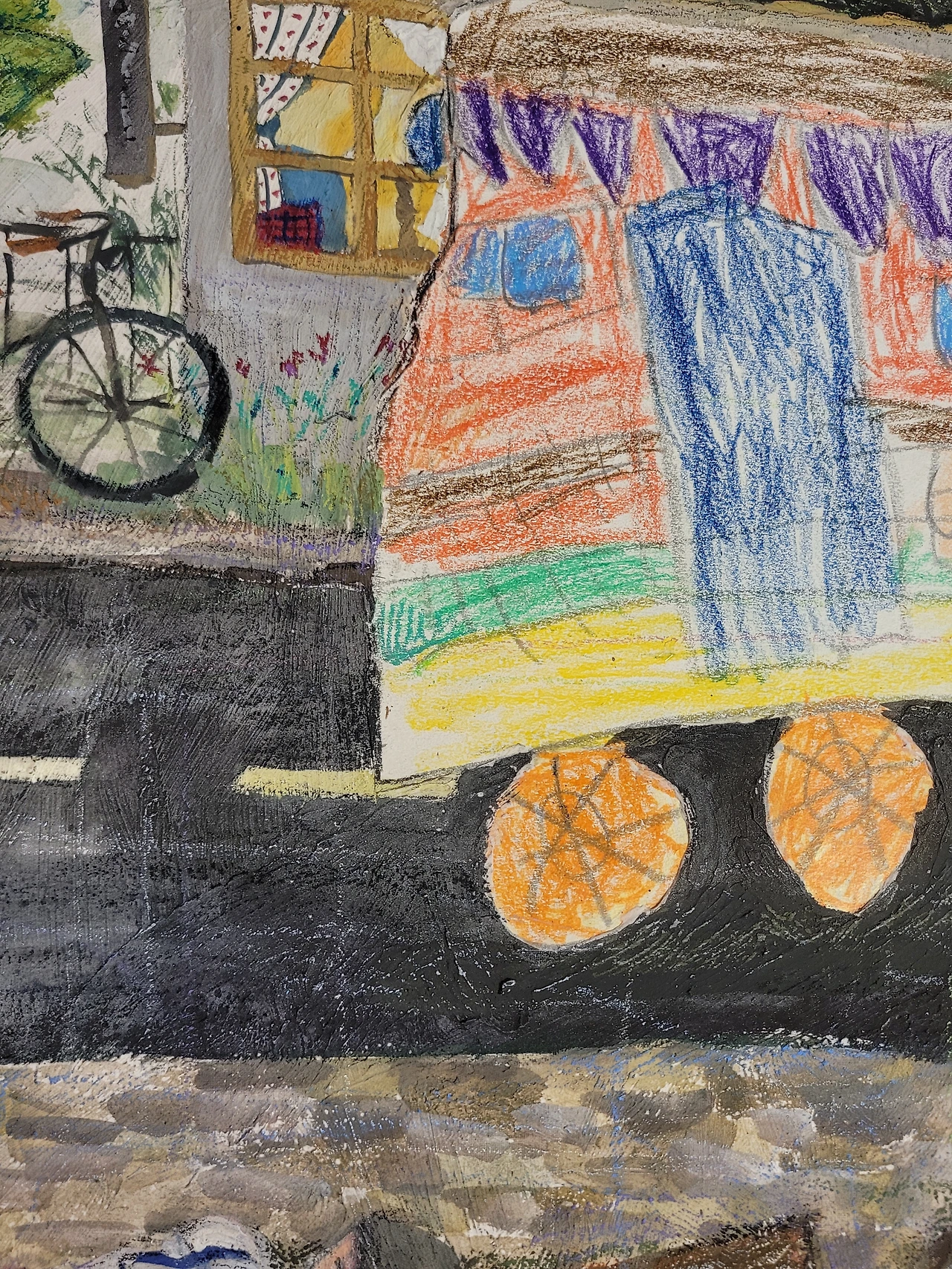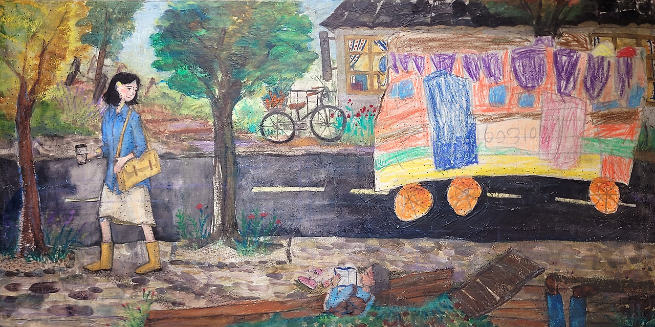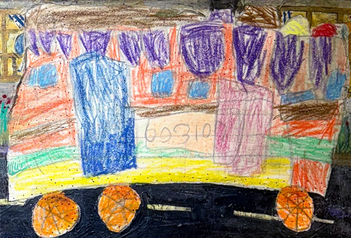(그림의 버스는 저의 첫 아이가 6살 때 그린 그림을 보관하다가.. 그림에 콜라주 기법으로 표현했습니다.)
