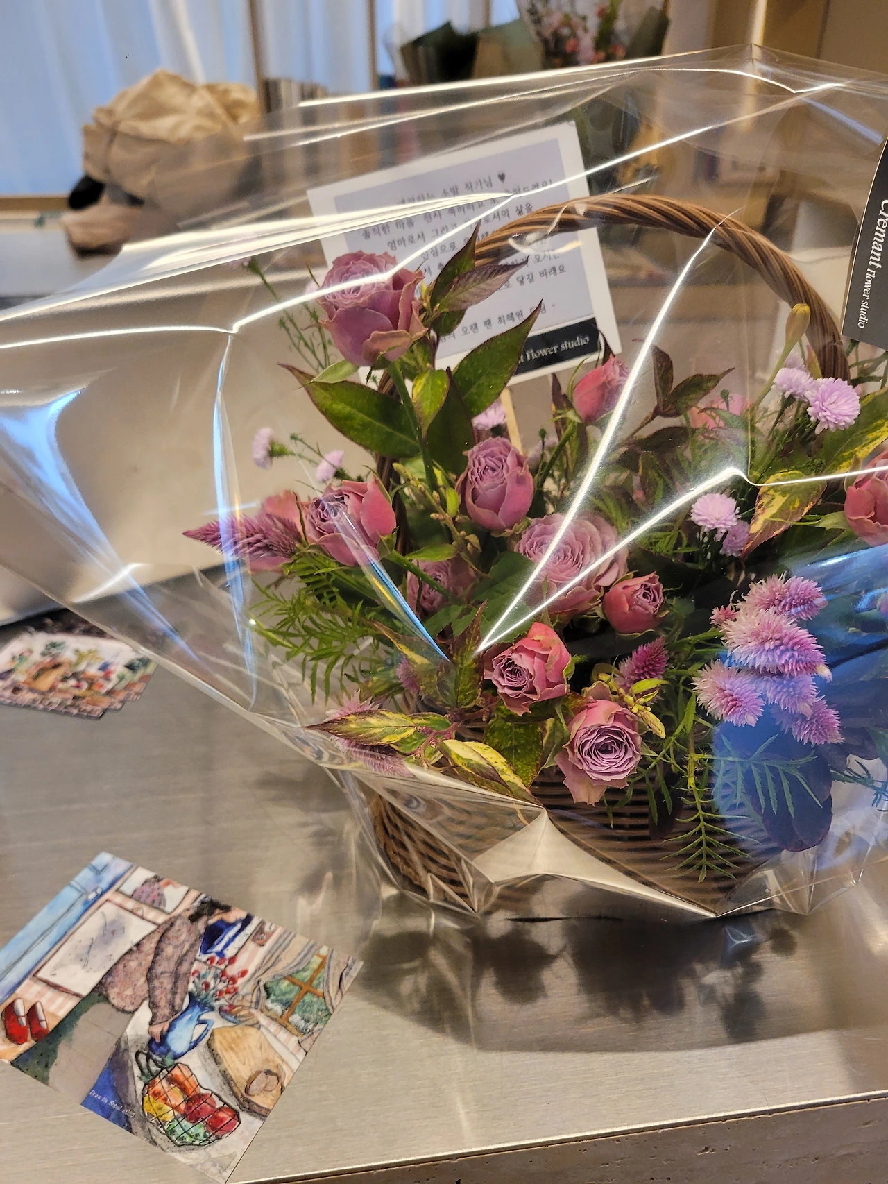 오늘 가장 기억에 남았던 분들 중 한 분이 있아요. 기존에 이 갤러리, 꼬메아미꼬의 팬인 엄마인 분이 오셔서 그림을 보고 많이 공감하고 가셨어요. 저의 생각이지만.. 그분의 촉촉해진 눈가를 보면서 저도 조금 마음이 일렁였어요.