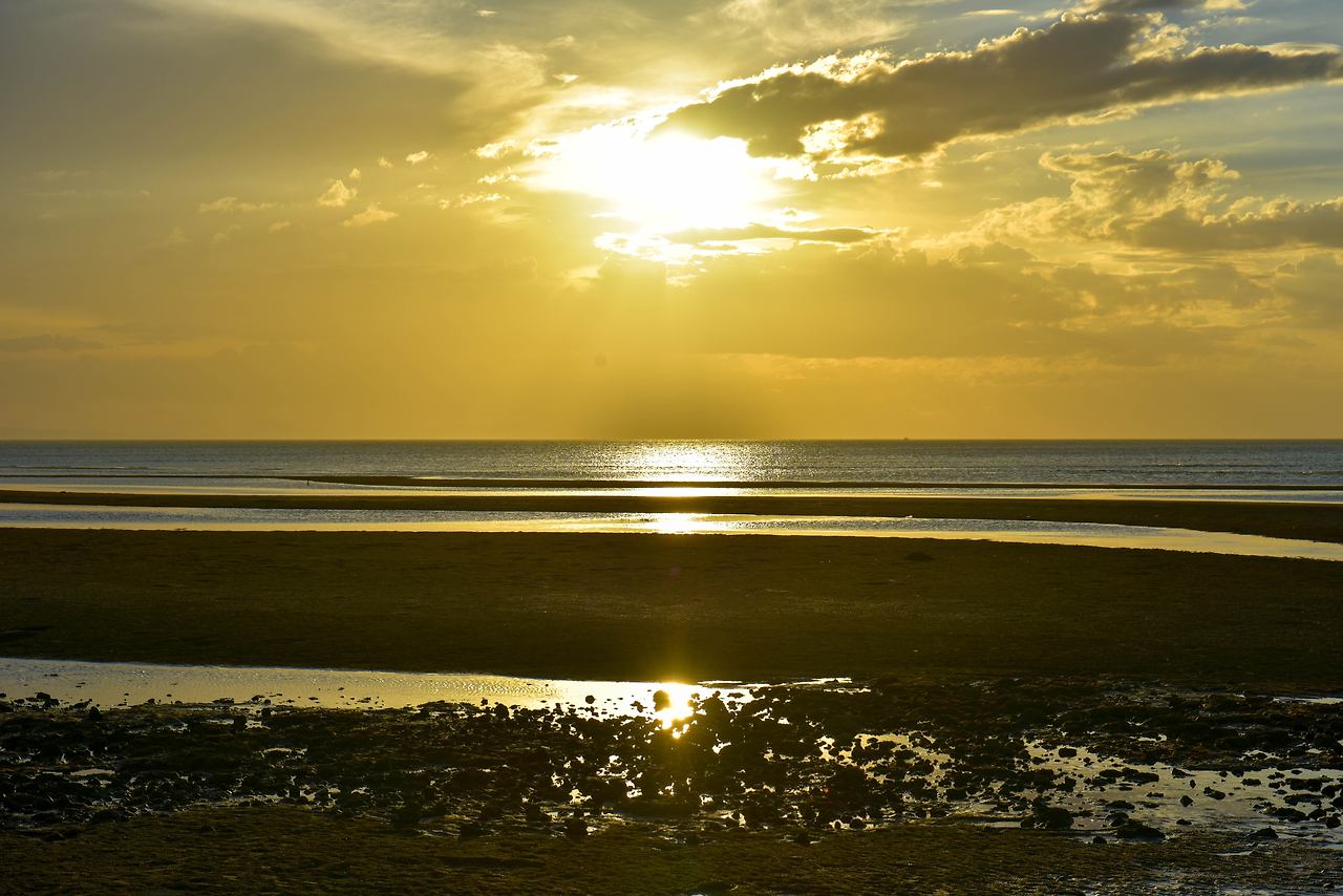 해안가에는 태양이 침몰하기를 기다리는 사람들이 바다를 바라보고 있다. 하늘에는 유난히 구름이 많다. 구름에 가려 선명하게 붉은 태양은 볼 수 없었지만 구름마저도 한 폭의 그림 같다. 그 사이로 내리는 빛은 바다를 황금빛으로 물들인다.