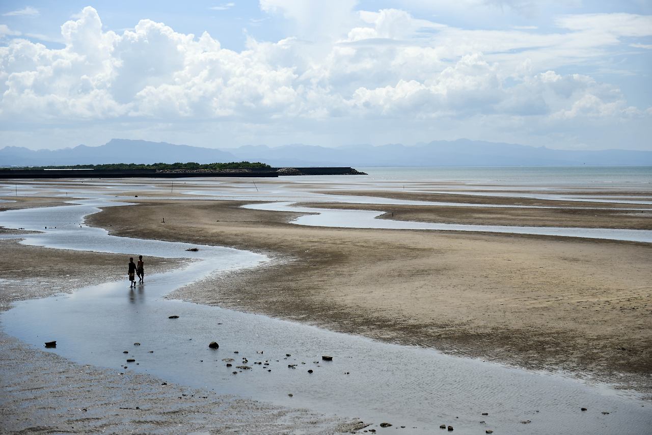 석양을 보기 위해 고이카나 로드의 명소를 돌아보고 저녁 무렵 마타마 해안으로 다시 돌아왔다. 한낮에는 한산했던 길가에 많은 차들이 줄을 지어 서 있다. 이제 막 사랑을 시작한 듯 수줍은 연인들이 갯벌 위를 걷는다. 연인들도 풍경이 된다.