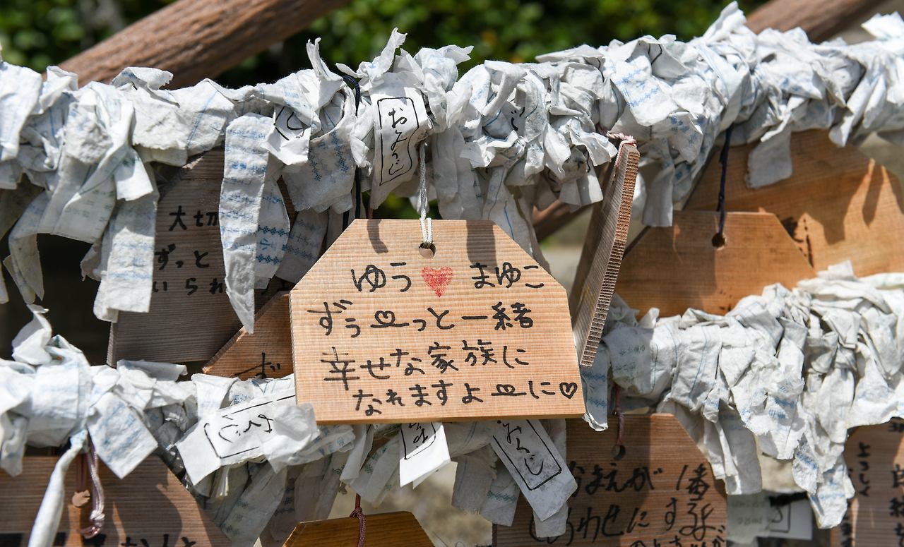 사랑을 이어주는 신사답게 소원을 적어 걸어 놓는 에마에는 사랑이 이어지기를 간절히 소망하는 마음이 가득 걸려있다.