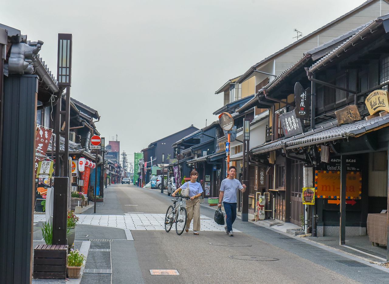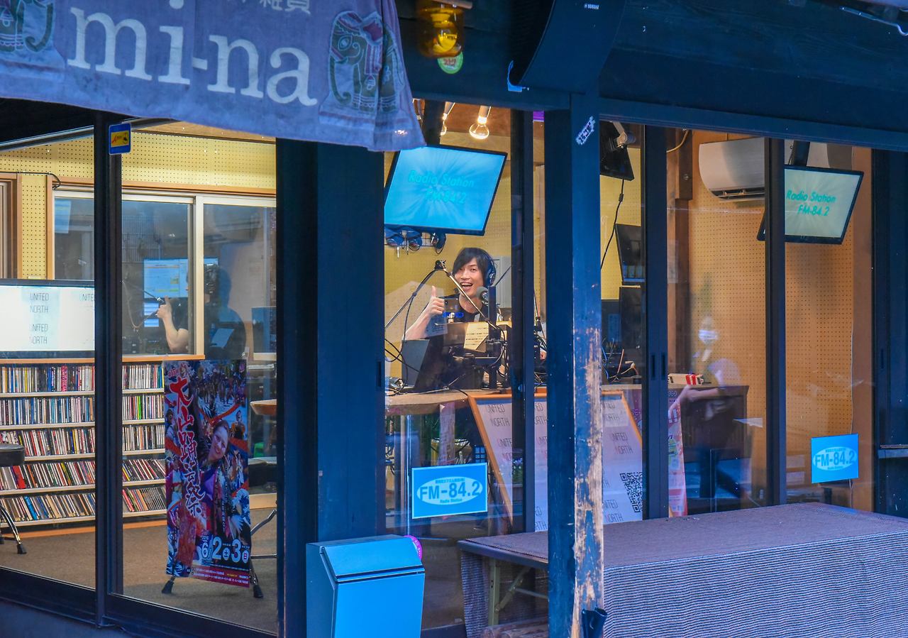 돗토리의 구라요시 거리처럼 아련한 느낌은 아니지만 교토의 기온 거리처럼 깨끗하게 정비된 모습이다. 옛 풍경 속에서 현대적인 사진관이 눈에 띄고, 길을 걷다 넓은 창 너머로 지역 라디오방송을 하는 DJ들이 모습이 이색적이다. 창 안을 들여다보니 DJ로 보이는 듯한 청년이 환한 미소를 지으며 손을 들어 엄지척을 해 보인다.