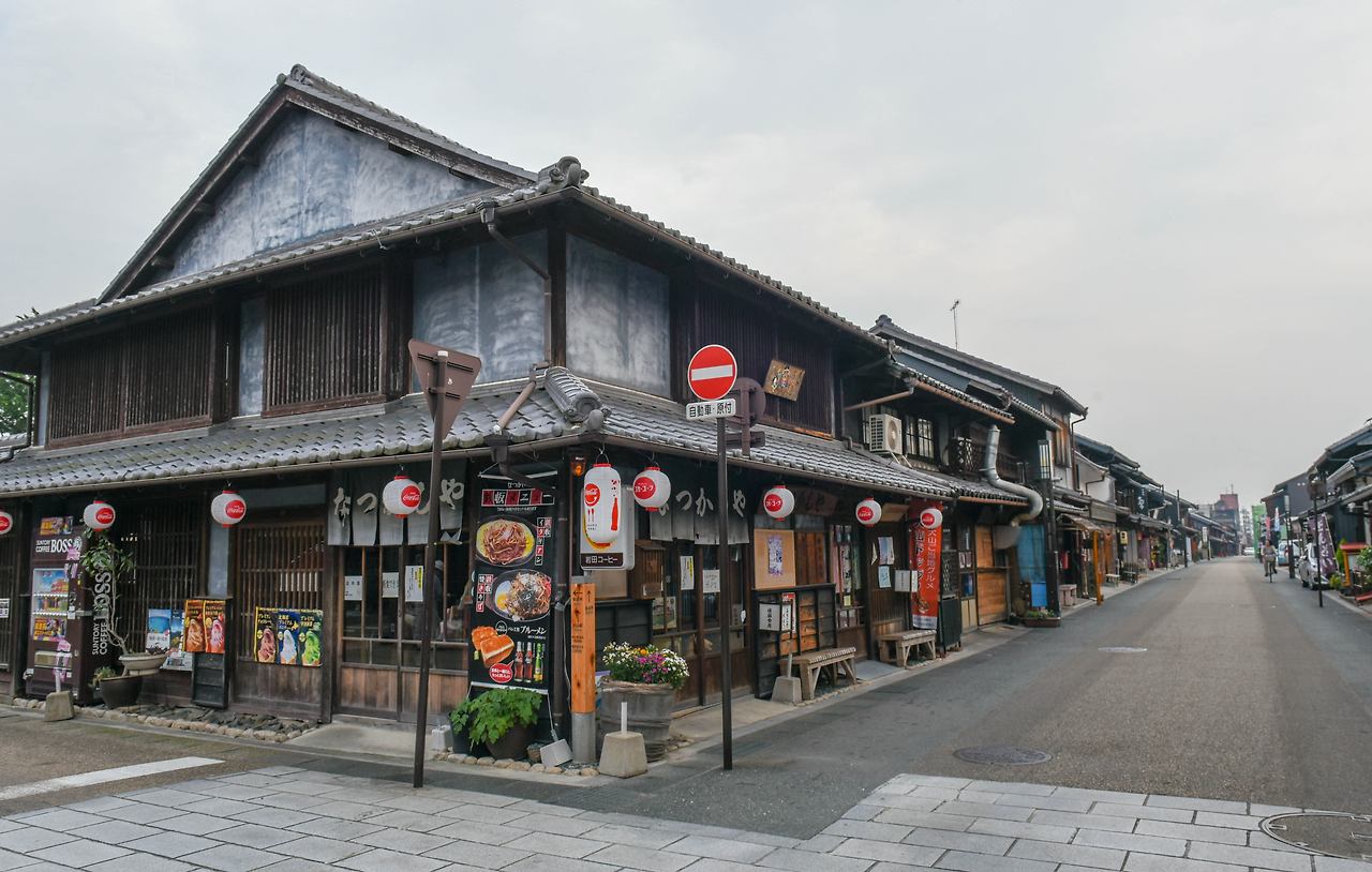 신사를 나와 길을 따라가면 성하마을로 이어진다. 이누야마 성 아래로 곧게 뻗은 길가에는 상점들이 모여 있다. 성하마을, 이누야마 조카마치는 원래 주택가였으나 마을의 발전을 위해 상인과 장인들을 살게 했다. 옛스러움이 묻어나는 건물은 대부분 1800~1900년대의 건축물이다.