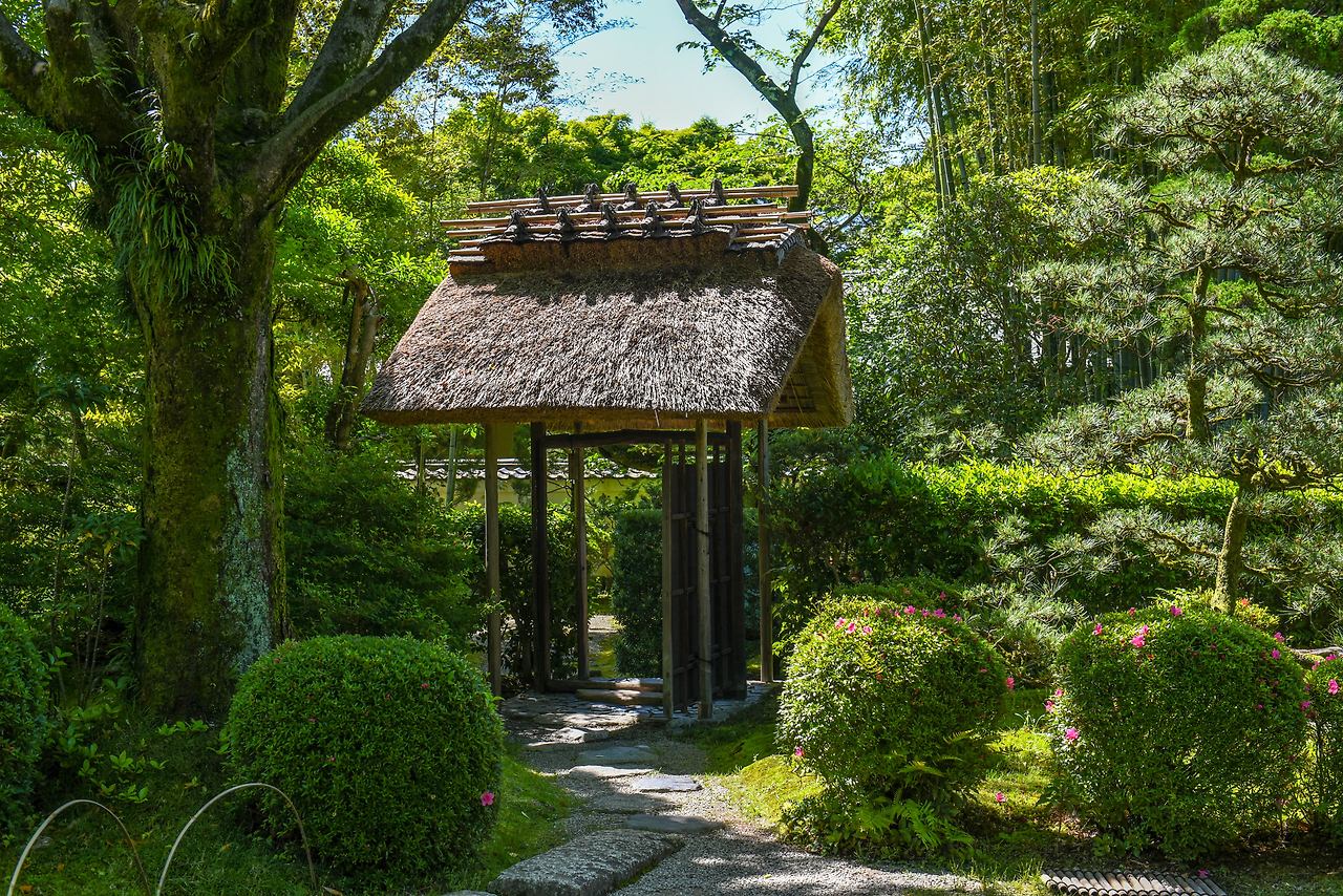 다실의 차분한 느낌 때문에 정원마저도 고즈넉하다. 다도의 느린 침묵이 정원을 감싼다. 아담한 정원이지만 하늘을 가릴 만큼 쭉 뻗은 대나무가 이어진 길은 상쾌하다. 이끼와 돌이 어우러진 정원에는 풀냄새와 나무냄새가 가득하다.