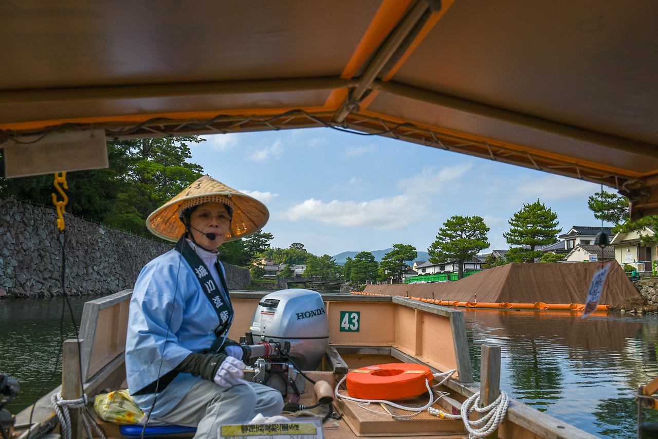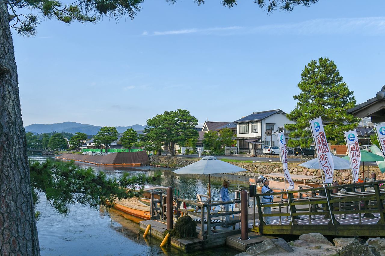 호수가 잔잔히 펼쳐진 도시에 유람선이 유유히 떠다닌다. 마쓰에 성을 둘러싼 호리카와 강 위를 조용히 미끄러져 가는 유람선을 타고 시가지를 구경하기로 했다. 유람선에 올라 신발을 벗고 자리를 잡아 앉았다. 배는 50분정도 마쓰에 성 해자를 돌며 호리카와 강 주변을 떠다닌다.