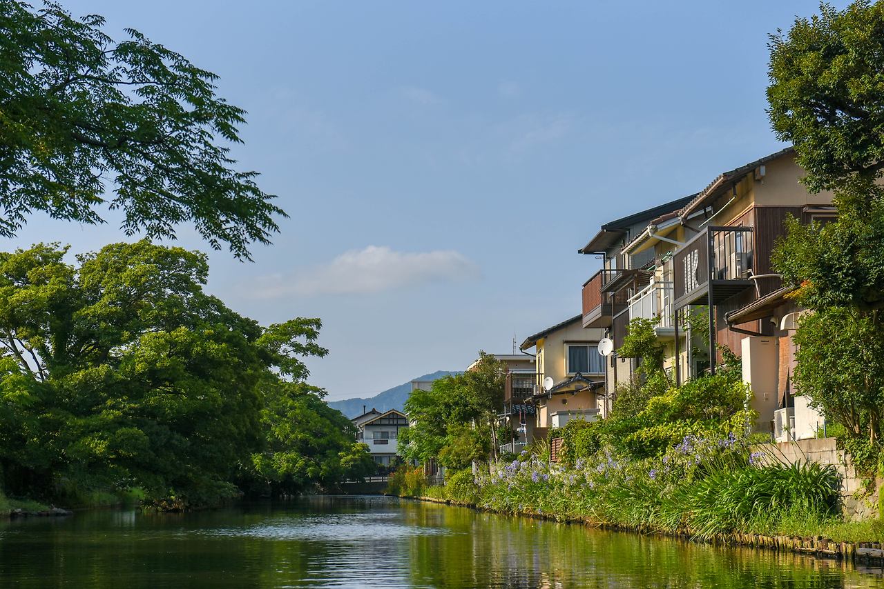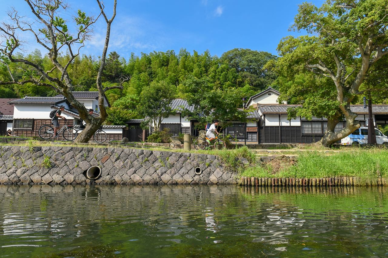 마치 필름처럼 배가 지날 때마다 풍경이 바뀐다. 아기자기한 예쁜 가옥이 나오기도 하고 무사의 저택이 나오기도 한다. 강가 도로를 자전거로 달리는 어린학생의 모습은 영화에 나오는 장면 같기도 하다. 강에서 바라보는 작은 도시는 평화롭다.