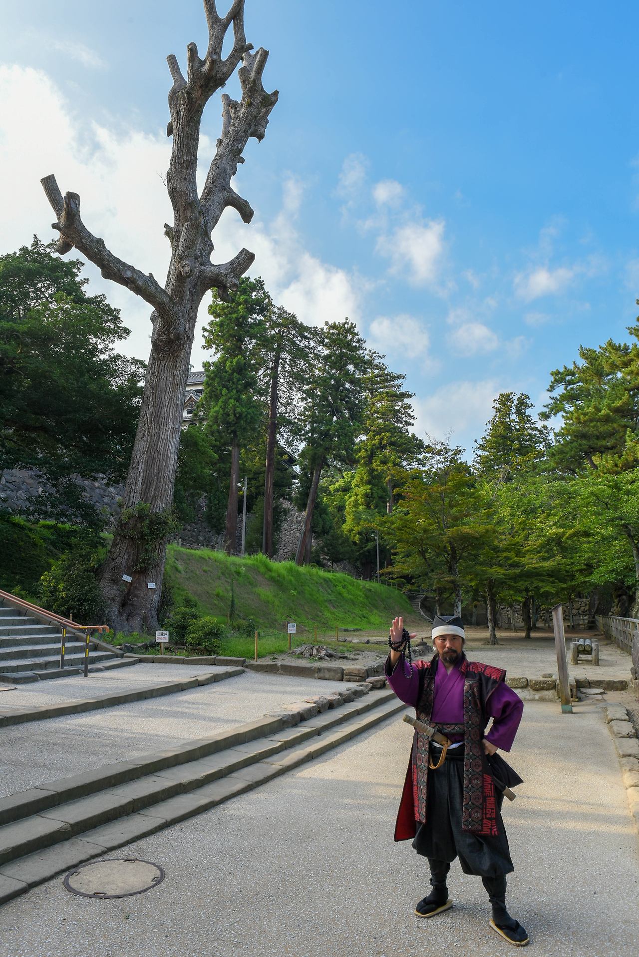 마쓰에 성은 주변의 공원과 성터 주변에 흐르는 강의 풍경과 어우러져 아름다움이 배가 된다. 성을 나오며 한 여름 더위에도 갑옷을 무장한 사람을 만났다. 성을 배경으로 기념사진을 찍어주는 사람인데, 함께 사진을 찍고 싶다고 하니 익살스런 포즈를 잡아준다. 그 옆에 서서 아름다운 성을 뒤로하고 유쾌한 사진 한 장을 남긴다.