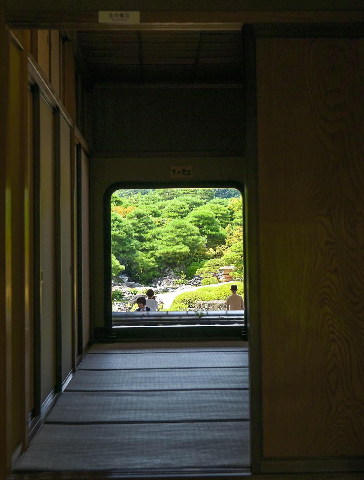 아다치 정원의 도코노마 너머로 사람들이 지날 수 있는데, 그 곳을 지나는 사람들이 정원 속의 작품이 된다. 사람들이 지날 때 마다 족자가 살아 움직이는 것처럼 느껴진다. 매 순간 다른 풍경을 만들어내는 족자를 감탄스럽게 바라보다 카메라의 셔터를 눌렀다. 예상대로 근사한 한 컷을 건질 수 있었다.