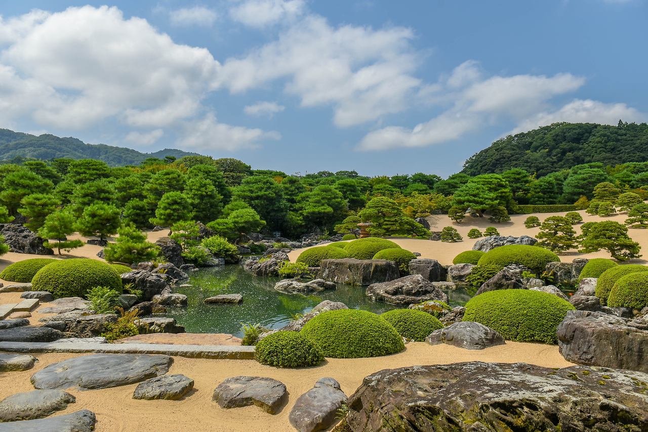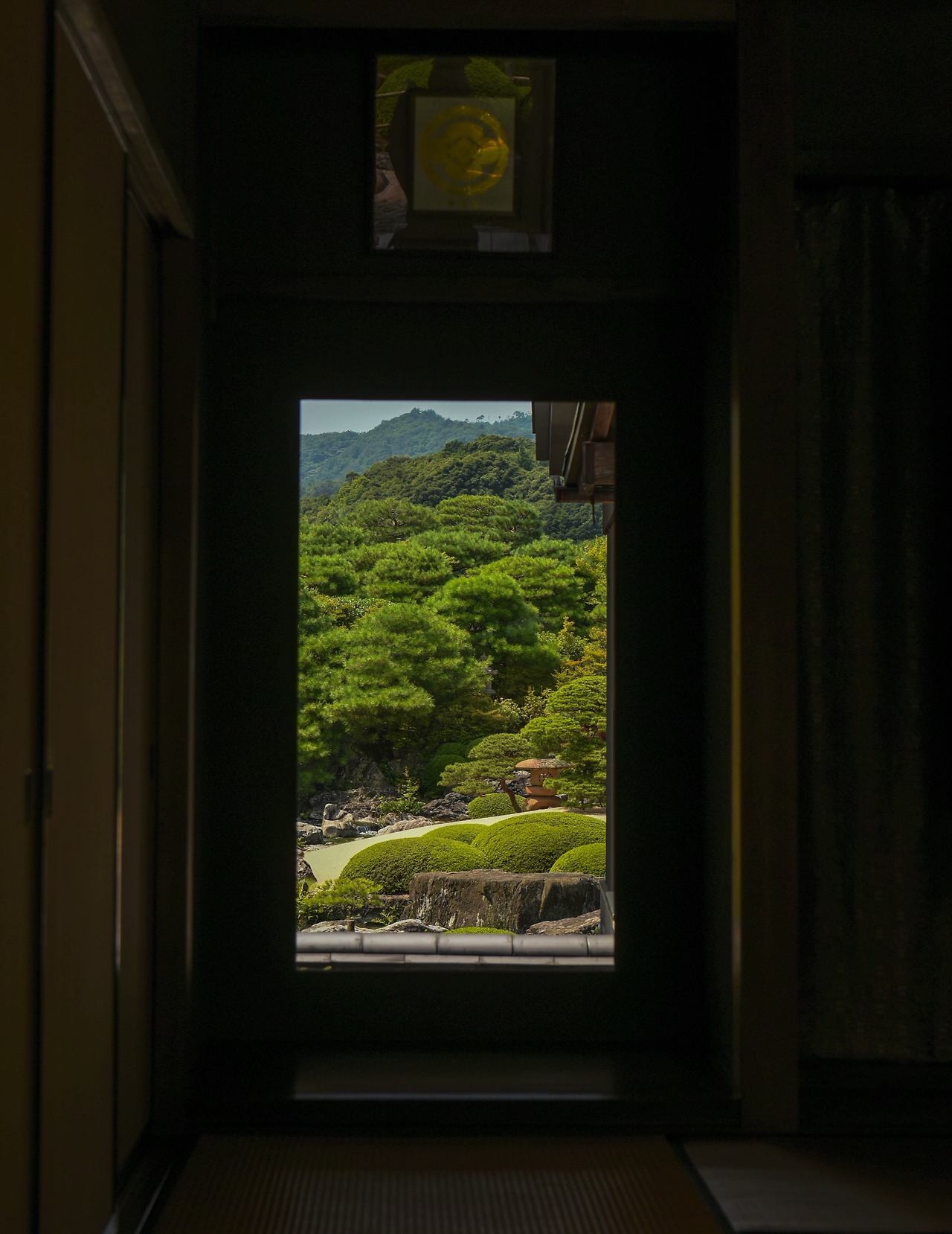 1970년 아다치 젠코가 개관한 아다치 정원은 5만평의 넓은 부지에 6가지 테마의 정원을 액자에 담아 작품처럼 감상할 수 있다. 야외로 나가 정원을 산책하는 것이 아니라 실내에서 전시회를 관람하듯 자연을 감상한다. 자연을 즐기는 기발한 발상이다. 고산수정, 백사청송정, 태정, 지정이라 이름 붙여진 풍경은 일본산수화를 보는 듯하다.