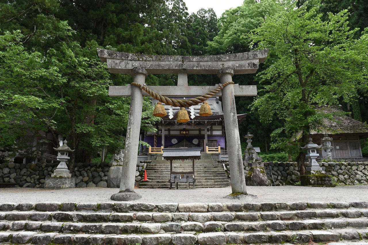 입구부터 거대한 삼나무에 둘러싸인 시라카와하치만 신사는 지역 축제인 도부로쿠 마쓰리의 주요 무대다. 도부로쿠는 우윳빛이 나는 일본 전통 술로 우리나라 막걸리와 비슷하다. 기념품 숍에서 도부로쿠 한 병을 사서 마셔보았다. 막걸리보다는 뒷맛이 깔끔하고 맑다. 10월이 되면 도부로쿠 마쓰리가 열리는데, 마을의 무사평안을 기원하기 위해 시작된 제례다. 마쓰리가 열릴 때에는 도부로쿠를 무료로 마실 수 있다.