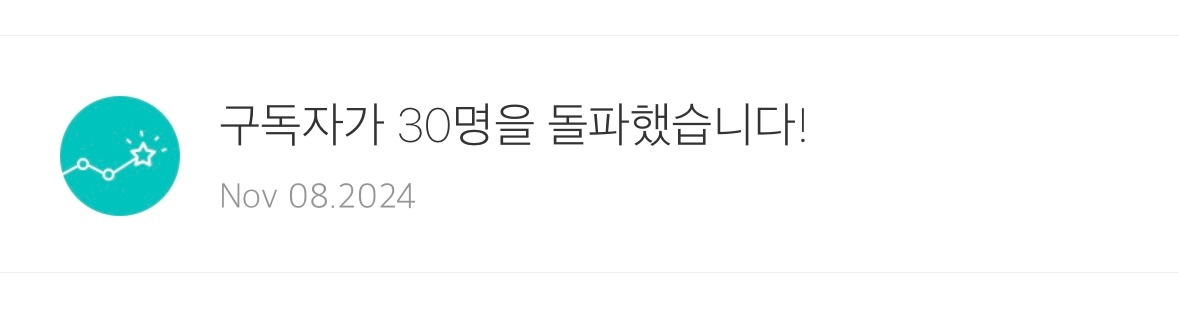 어느 날 문득 구독자수가 30명에 돌파했다는 알림이 왔다! 알 수 없는 이유로 빠졌다 늘어났다 해서, 지금은 다시 서른 명이 안된다지만 그래도 뭔가 이 작고 소담한 나만의 서재를 보아주시는 분들이 조금씩 늘어날 때면 매번 신기하면서도 따뜻함이 마음에 한가득 차오른다.