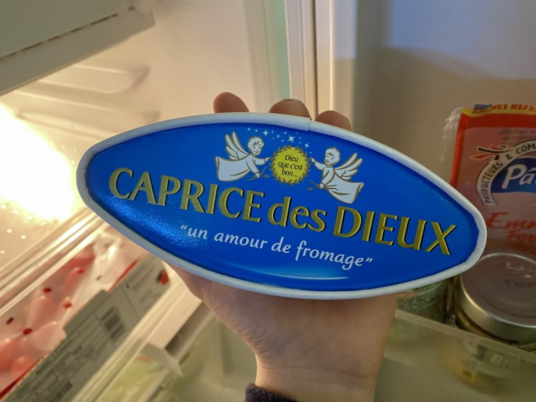 바로 '카프리 데 디유(Caprice des Dieux)'치즈. 한국말로 천사의 변덕이라는 이름을 갖고있다. 크리미하지만 향과 맛은 강하지 않아서 비교적 진입장벽이 낮고, 프랑스 사람들에게도 인기가 많은 치즈라고한다. 한국에서도 꽤 입소문을 탄 모양인지 와인 파는 곳이나 온라인 마켓에서도 구매가 가능한데 현지와 가격차이가 꽤 커서 한국에서는 거의 먹지 않고 있다. 아니 먹지 못하고 있다.