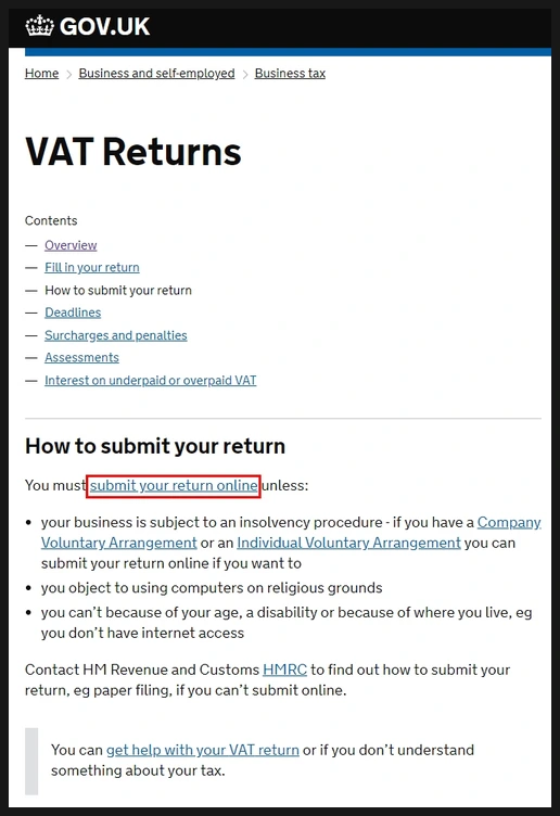 그다음 화면에서는 'submit your return online'을 클릭합니다.