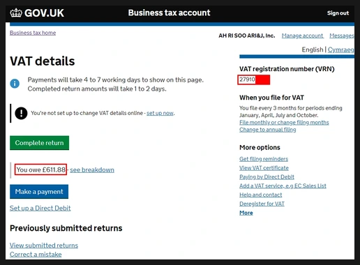 VAT 납부가 완료됐습니다! 수고하셨습니다 :)