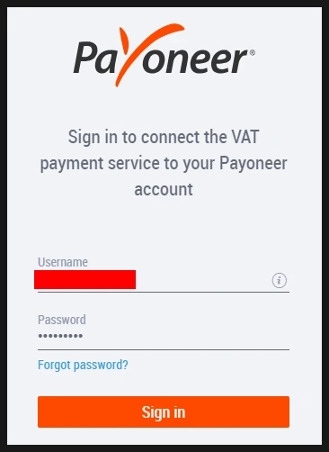 다음 화면에서는 페이오니아 계정을 연동하기 위해 로그인 정보를 다시 제출하라고 나옵니다. 페이오니아 아이디와 비번을 기재하고 sign in 버튼을 클릭합니다.