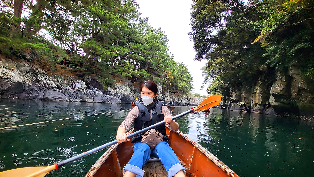 뚜벅이 여행을 좋아하는 나는 여행지에서 대중교통을 즐겨 탄다. A양도 마찬가지였다. 오피스텔에서 시내버스를 타고 갈 수 있는 대중적인 관광지를 미리 찾아뒀고 버스를 타고 30분, 또 내려서 관광지까지 15분가량을 걸어서 쇠소깍에 도착했다. 렌터카를 이용하면 몇 배는 편하게 갈 수 있지만 버스여행만의 묘미가 있다. 몇 년 전만 해도 제주 버스시간이 일정치 않아서 뚜벅이 여행이 힘들었지만 최근에는 버스 노선도 많아지고 정류장에서 버스시간도 거의 정확히 확인할 수 있었다.