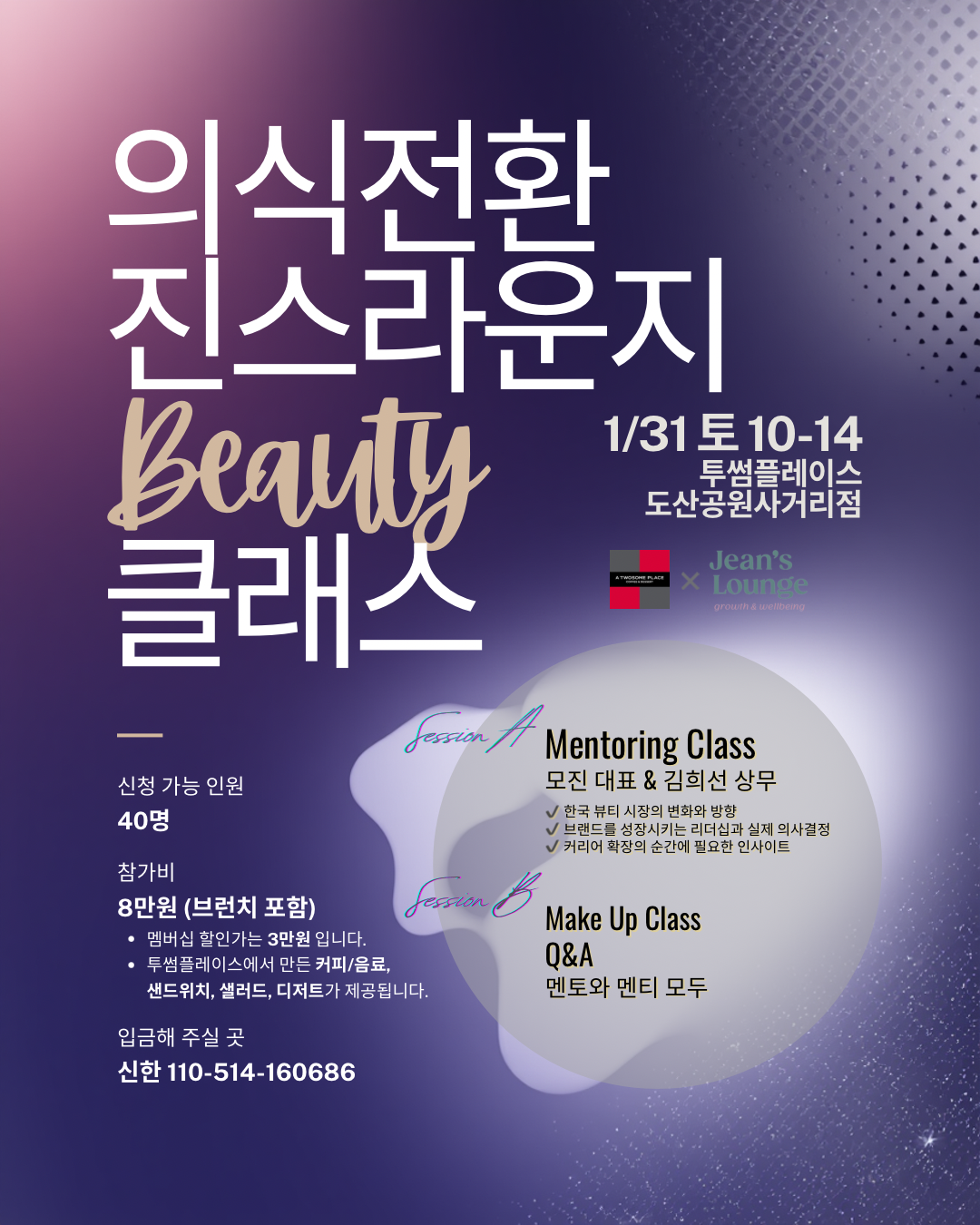 얼마 전, 재작년부터 운영진으로 참여하고 있는 ‘진스라운지‘란 커뮤니티에서 올해 들어 첫 오프라인 모임을 (”Beauty“라는 주제로) 하게 되었다.
