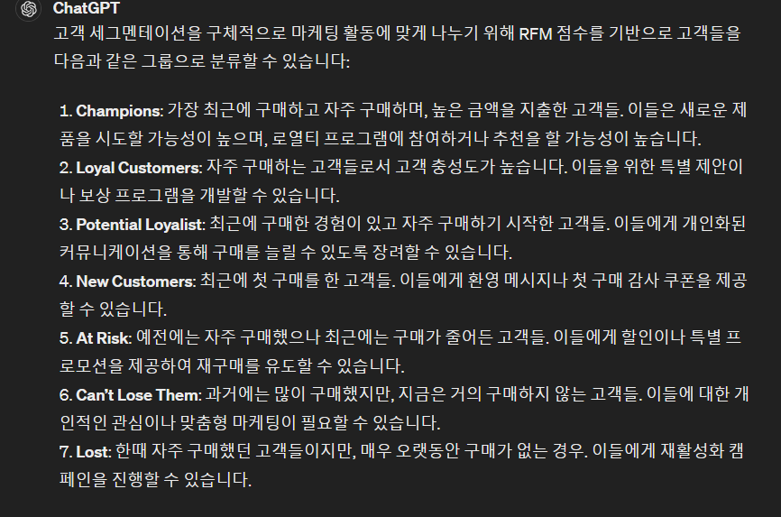 chat gpt를 활용해서 RFM 고객 세분화로 CRM 전략세우기