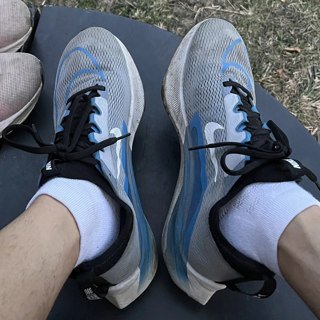 지난 5월, 부상 완치 기념으로 구매한 줌플라이 4는 매장에서 처음 신었을 때부터 내 신발임을 알 수 있었다. 신축성 있는 내피 소재로 신발끈을 묶기 전부터 발목 밑 딱 적당한 정도까지 적당한 강도로 내 발 전체를 감싼다. 뒤꿈치 부분에는 도톰하게 메쉬로 감싼 스펀지가 튀어나와 있어 어떤 달리기를 하더라도 뒤꿈치가 신발에서 들리지 않는다. 신발끈은 내 발을 단단하게 고정시키면 길이가 많이 남아서 그 위로 한 번 더 매듭을 지었을 때 풀리지 않으면서 길이도 알맞게 떨어진다. 신발을 벗는 것은 신발끈이 묶인 상태에서도 힐컵 바깥 부분을 손으로 잡고 아래로 밀면 매우 쉽다. 신발을 다시 신을 때에도 발등 위와 발 뒤꿈치 쪽에 달린 고리를 양손의 검지 손가락 두 개를 모두 사용해 신발 입구를 벌리고 발을 넣으면 힐컵이 구겨지는 일 없이 부드럽게 들어가 다시 단단하게 고정된다. 줌플라이 4는 달리기를 다시 시작한 내게 신발 변명을 할 수 없게 만들어 준 나에게 있어서 완벽한 러닝화이다. 그런데 춘천 마라톤을 2 주일 앞둔 10월 중순, 나는 조급해졌다. 내 러닝화 줌플라이 4는 이미 800km 이상을 달려 훈련을 할수록 러닝화가 최적의 퍼포먼스를 낼 수 있는 전성기에서 점점 멀어지고 있기 때문이었다. 처음 신었을 때의 발을 감싸는 느낌은 여전했지만 통통 튀는 그 카본 플레이트의 반발력과 줌 리액트의 쿠션감이 줄어들었다. 21km 이상을 뛰면 내가 러닝화를 신고 뛰는 건지 반스를 신고 뛰는 건지 모를 정도로 말이다.