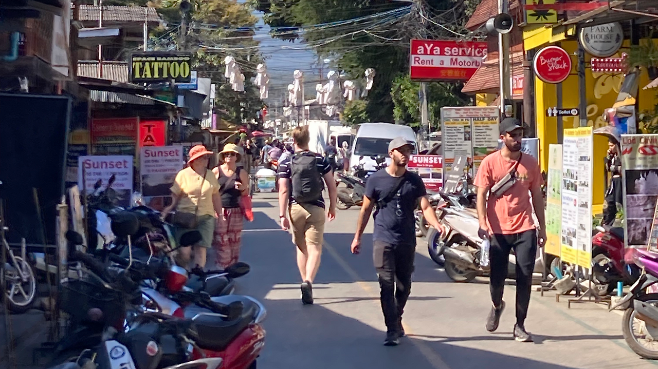빠이 여행자 거리를 걷다가 보면 거리엔 대부분 유럽인들이다. 카페, 레스토랑 노상엔 유럽인들로 가득하다. 웃통을 벗고 담배를 물며 스쿠터를 타는 서양인 오빠들은 쉽게 볼 수 있다. 길 위 강아지들도 아주 쉽게 볼 수 있는데 여기 강아지들도 자유로운 영혼인 것 같다. 길 위에 편안하게 쿨쿨 자고 있다.