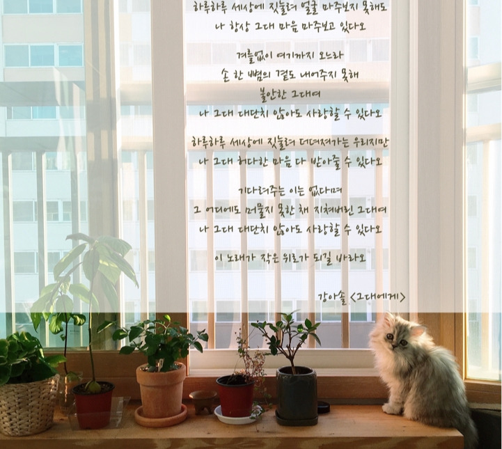 이런 나에게 이 노래는 참 많은 위로가 되었다. 대단하지 않아도 사랑할 수 있고 허다한 마음도 다 받아줄 수 있다고 담담하게 말하는 목소리가 참 좋았다. 나에게 위로가 되었던 이 노래가 또 다른 누군가에게도 가 닿기를 바라며..