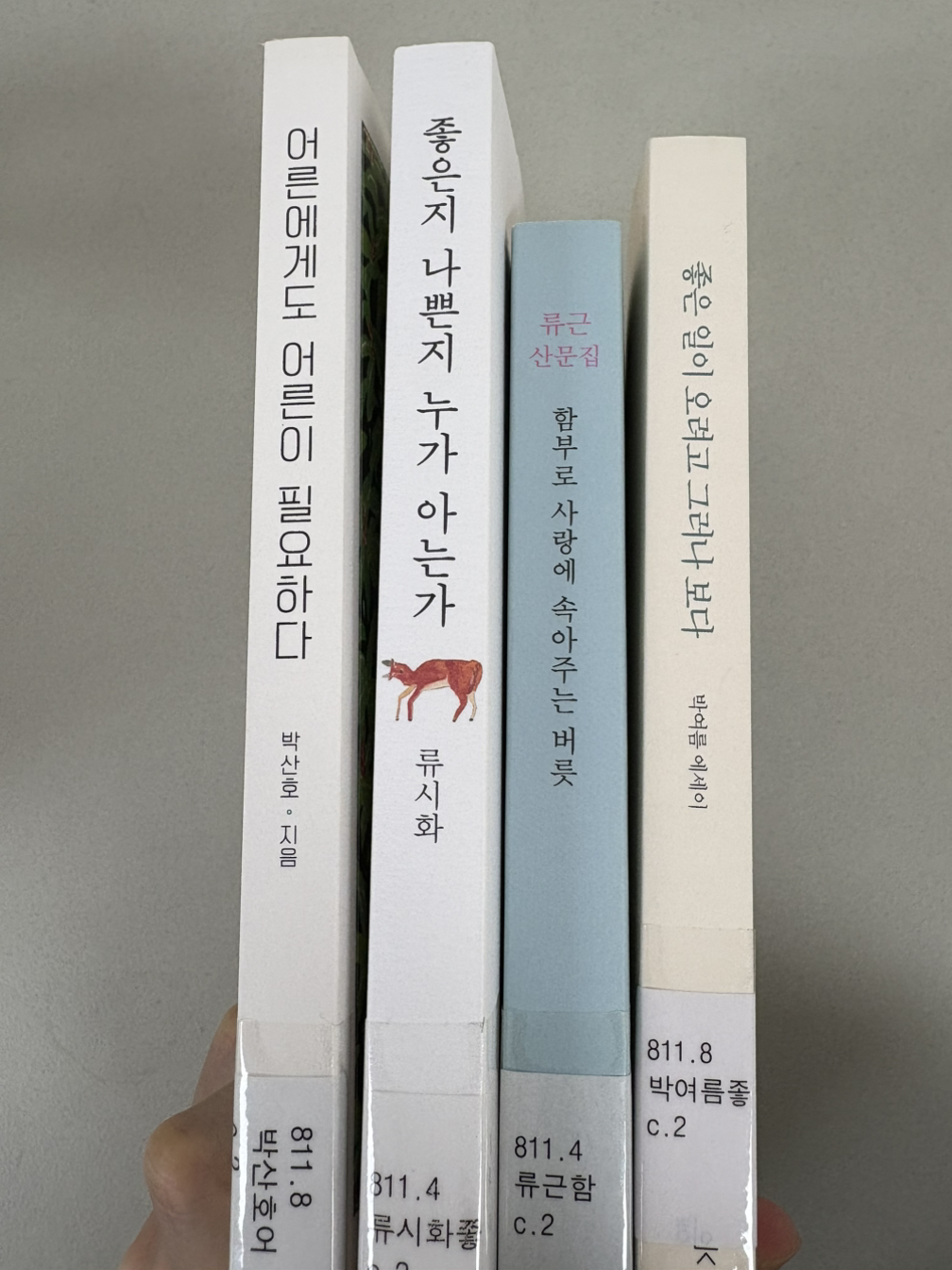 오랜만의 도서관 대출. 책 제목만 봐도 지금 내 마음 상태가 어떤지 알 수 있다고 선생님들이 놀린다.